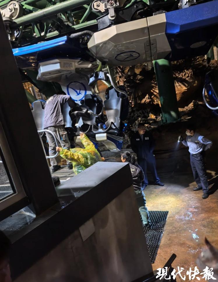 孟女士回忆,事发时间是10月9日晚上9点45分。当时她正乘坐北京环球度假区的“飞越侏罗纪”游乐设施,但是设备突发故障,包括孟女士在内的7名游客,在雨中悬挂了约半个小时。其间,孟女士还闻到了设备发出的焦煳味。