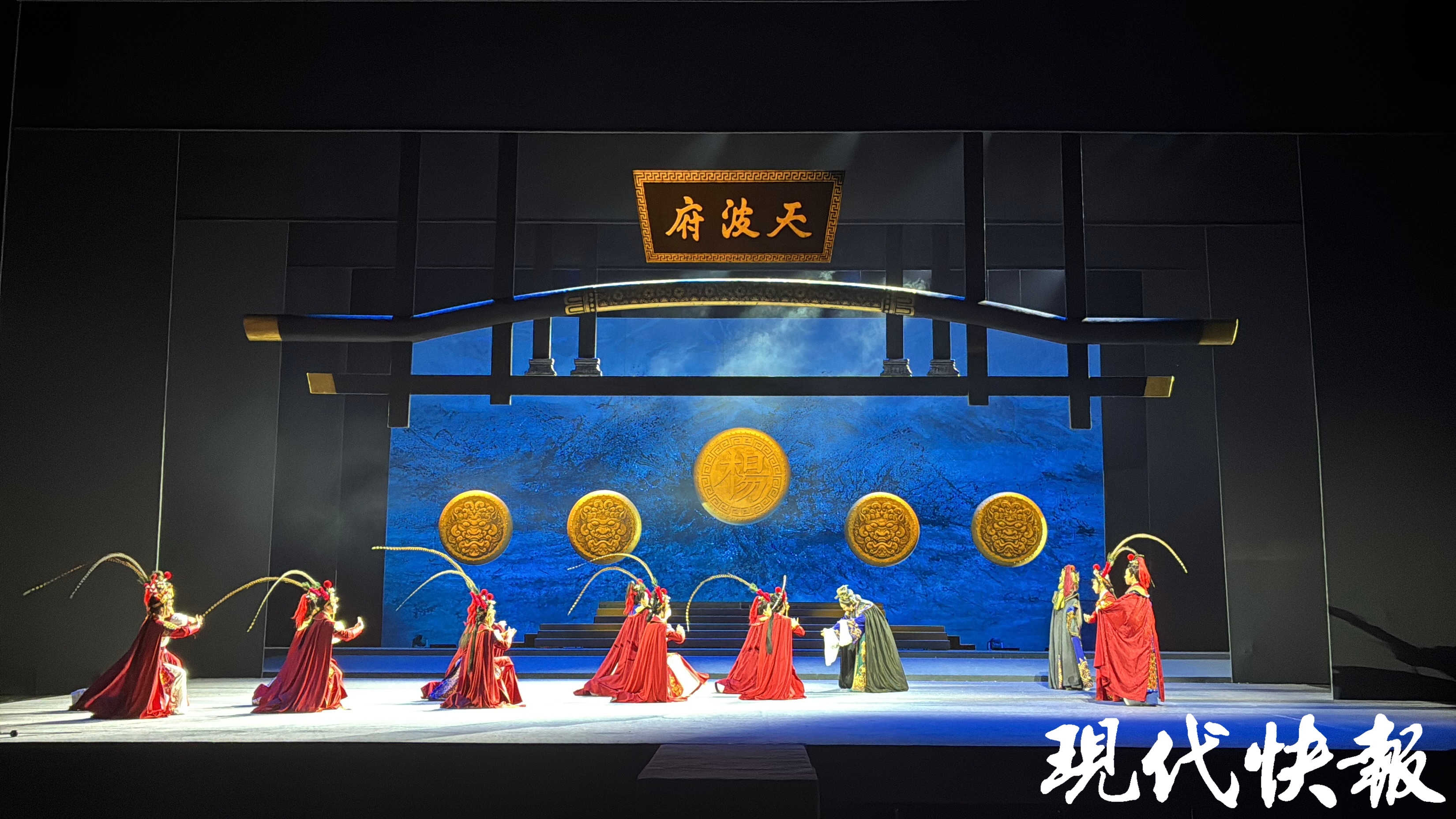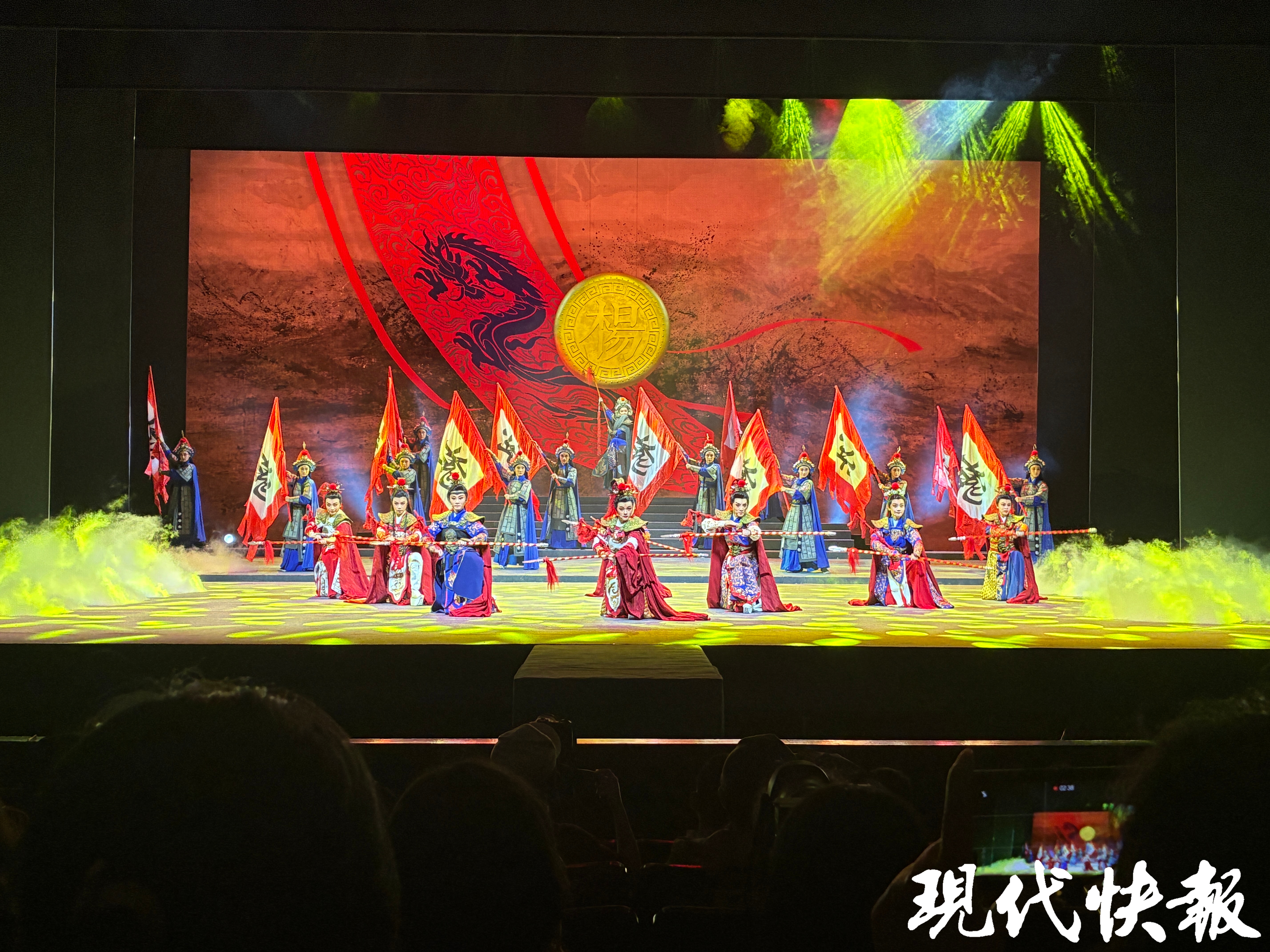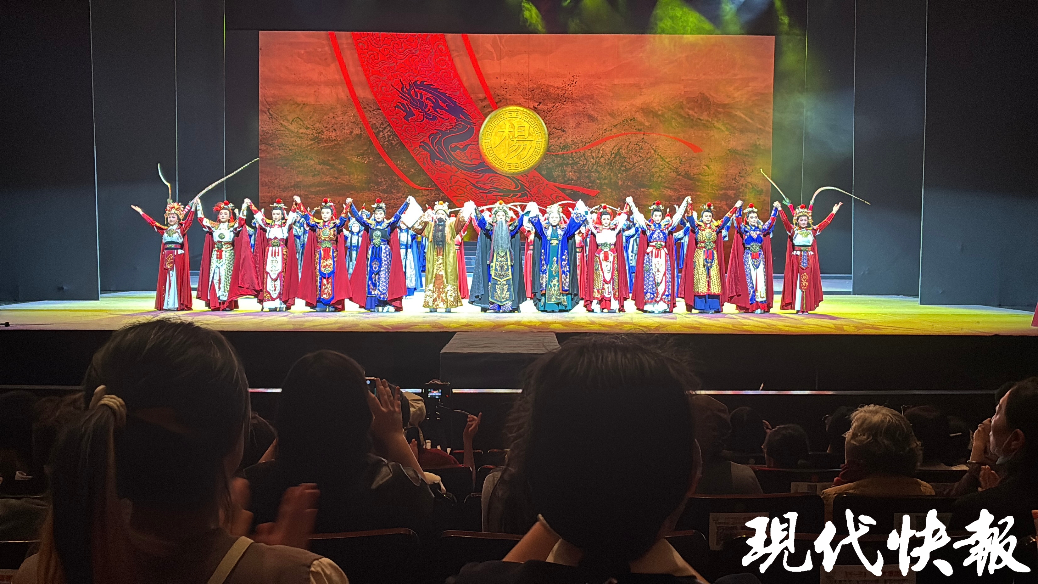 舞台上,浮雕式立面屏风如同时空之门缓缓开启,天波杨府的庄严、演武校场的热血、九层塔楼的巍峨,一一呈现于观众眼前。八名新生代女小生化身杨家八将,以越剧独有的韵味,演绎着英雄少年的热血与柔情。舞台下,观众或屏息凝视,或热泪盈眶,随着剧情的起伏,沉浸在这段跨越千年的英雄故事中。