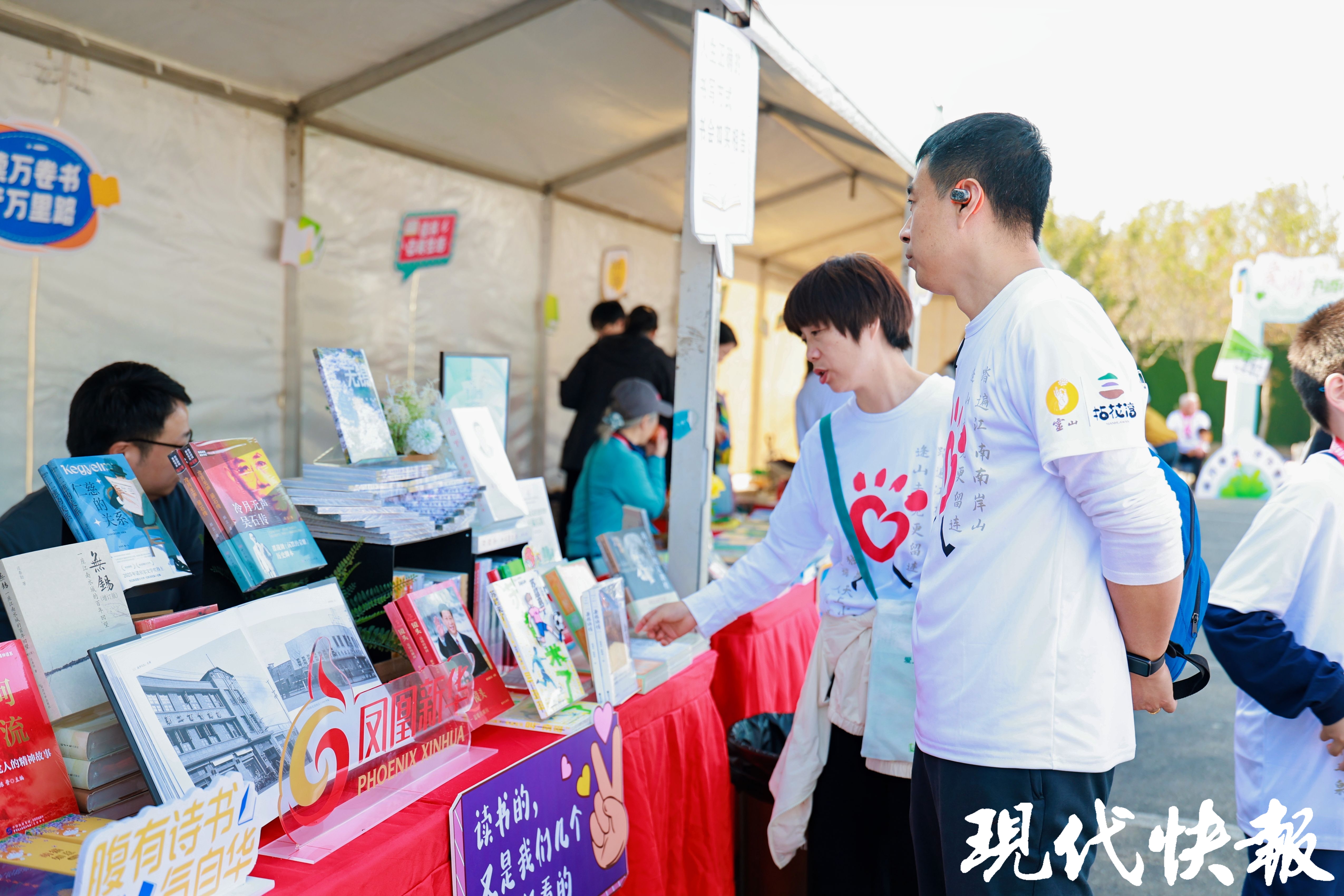 各摊位还设置了阅读趣味互动游戏,许多走完全程的徒步者在此歇脚,一边欣赏文创,一边翻阅刚购入的书籍,或与家人在朋友圈分享自己完赛感悟,惬意地享受午后时光。