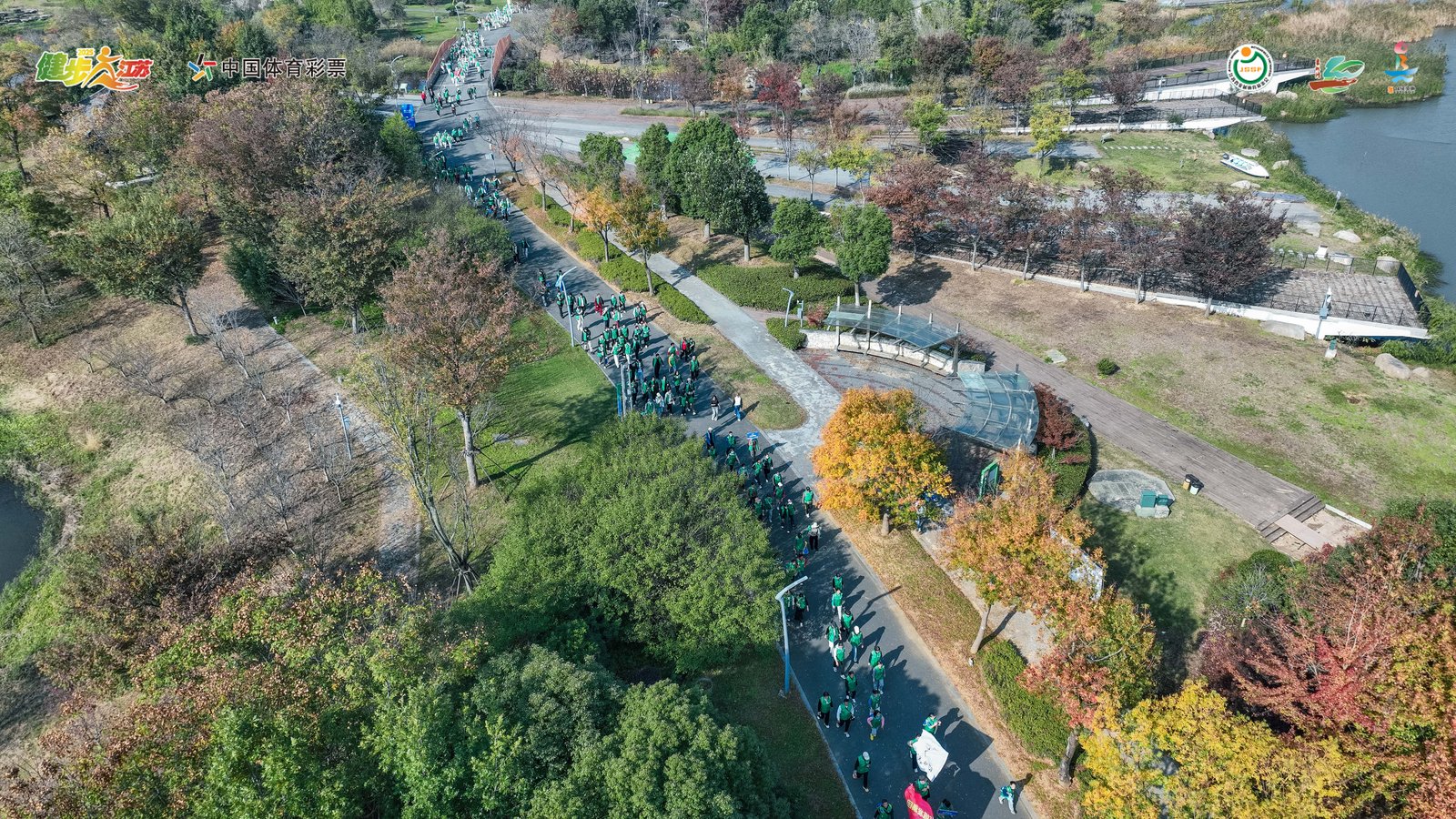 随着发令汽笛昂扬响起,17支健步走方阵的千余名运动健身爱好者精神饱满,步伐矫健,挥动旗帜,从扬州世博园1号门出发,沿枣林路、山庄路一路前行,随后进入世博园园区。路线串联起西安园、哈尔滨园、熊猫馆、栖凤桥多处景点,经过5公里健走最终抵达梦幻叠瀑,健步者跃动的身姿成为亮丽风景,枣林湾的秋日美景因灵动活力而更加充满生机。整条路线在城市道路与园林景致间自然过渡,健步走爱好者们既能感受城市发展的蓬勃脉动,又能领略自然生态的优美画卷,在秋色宜人的枣林湾体味愉悦身心的美好心境。