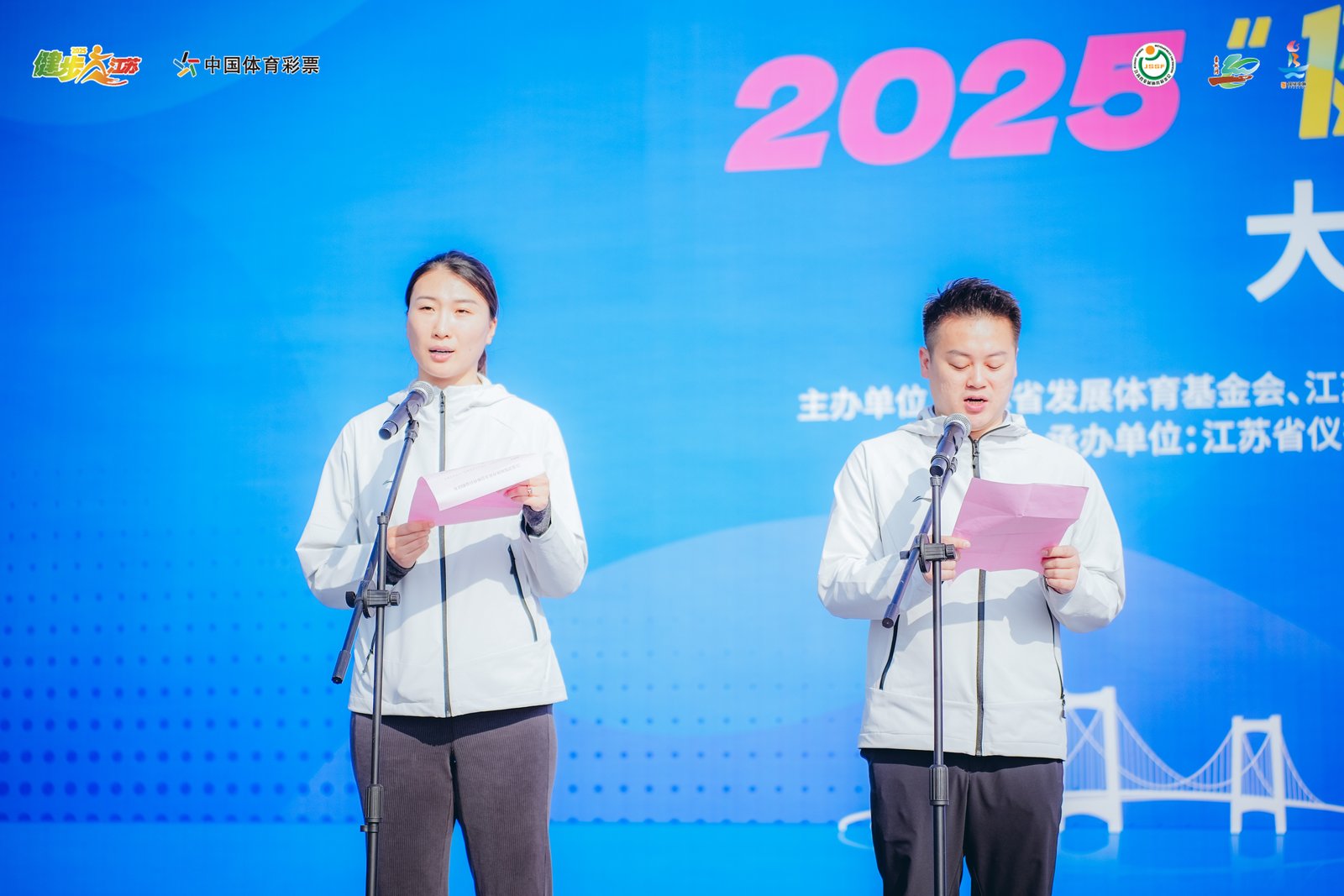 现代快报讯(记者 王卫)11月15日,“2025健步走江苏(仪征站)大型公益系列活动”在扬州枣林湾正式启动。江苏省发展体育基金会形象大使、蹦床奥运冠军陆春龙,击剑奥运冠军许安琪宣读体育公益倡议并共同领走。