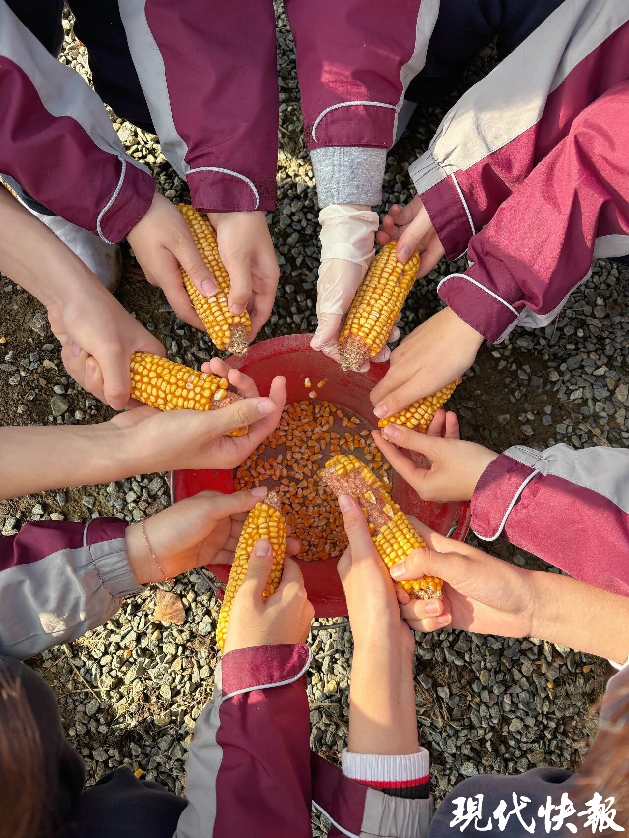 最壮观的莫过于秋日的稻田,金色稻浪随风起伏,同学们弯下腰割水稻,用镰刀与稻秆对话。掼水稻时看谷粒在摔打下,蹦跳着落入谷仓,“粒粒皆辛苦”从课本上的诗句,变成了掌心真切的重量。