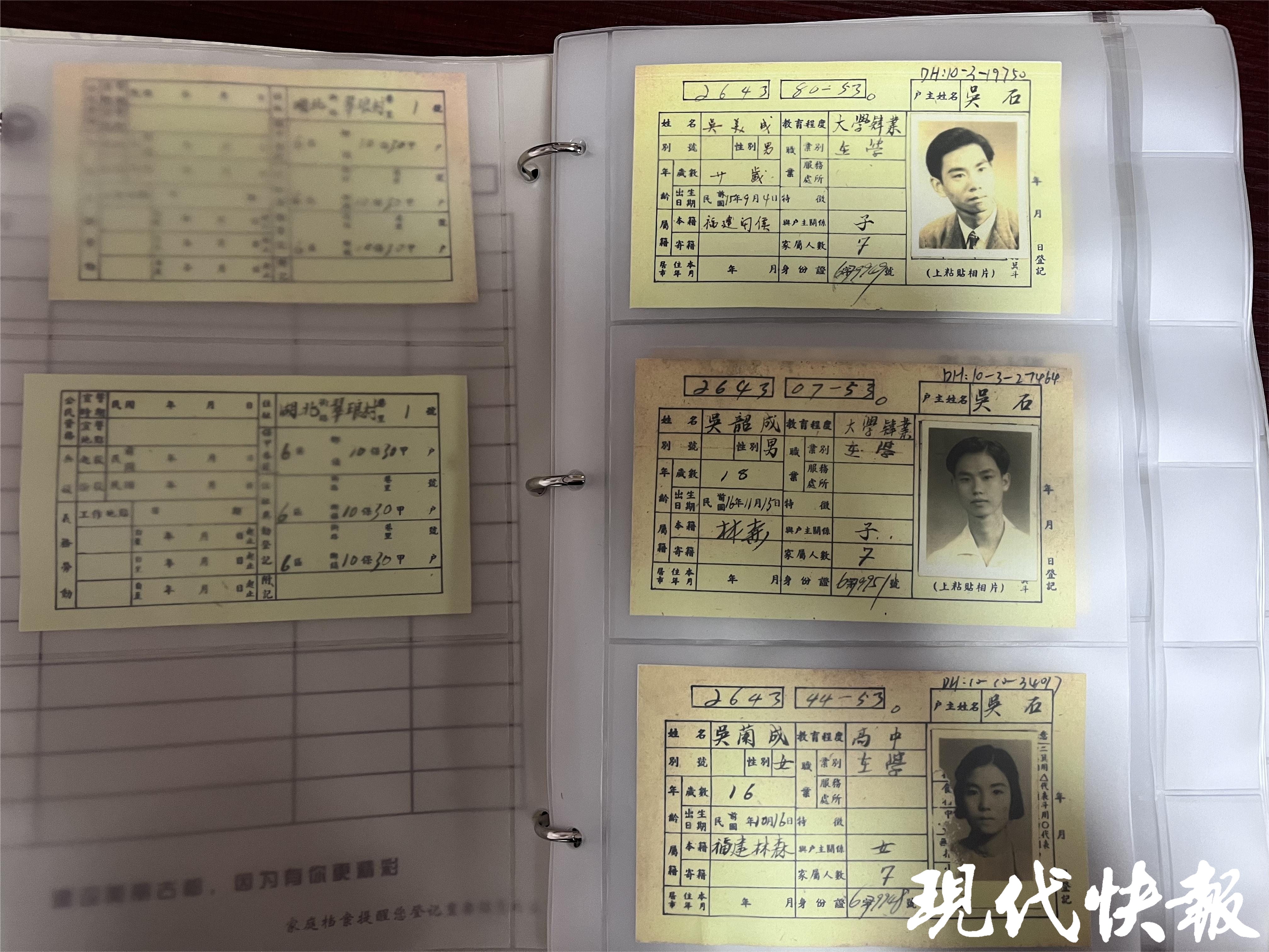 现代快报讯(记者 胡玉梅 裴诗语/文 史童歌/后期)一张张斑驳的户籍卡,不仅是英烈们曾经生活的痕迹佐证,更凝聚着他们为家国大义挺身而出的赤诚之心。11月29日,由江苏国家安全教育馆、南京市档案馆、中共南京市委党史工作办公室、南京市博物总馆主办,中国共产党代表团梅园新村纪念馆、南京周恩来精神研究会承办的“致敬英烈——沉默的荣耀‘东海小组’烈士后人南京寻访暨户籍卡赠送仪式”活动在梅园新村纪念馆举行。