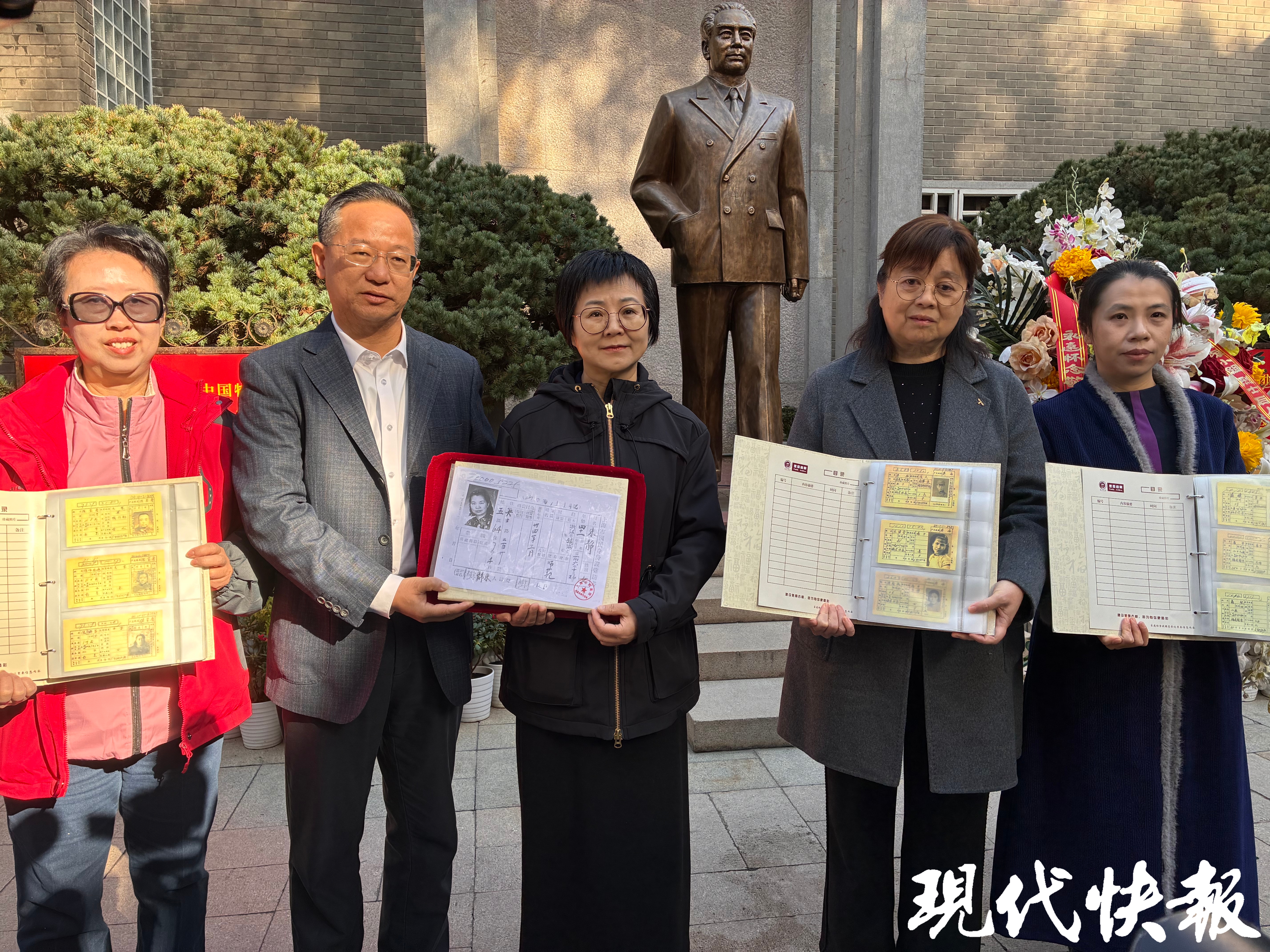 “这不仅是一场温暖的传递,更是跨越时空的交汇,让我们得以与先辈紧紧相拥。”朱枫孙女朱容瑢的话语里满是动容。陈宝仓烈士外孙陈皓望着泛黄的户籍卡感慨:“这是我第一次见到姥爷的户籍卡,照片虽已褪色,但先辈的风骨与信仰,让我百感交集。”