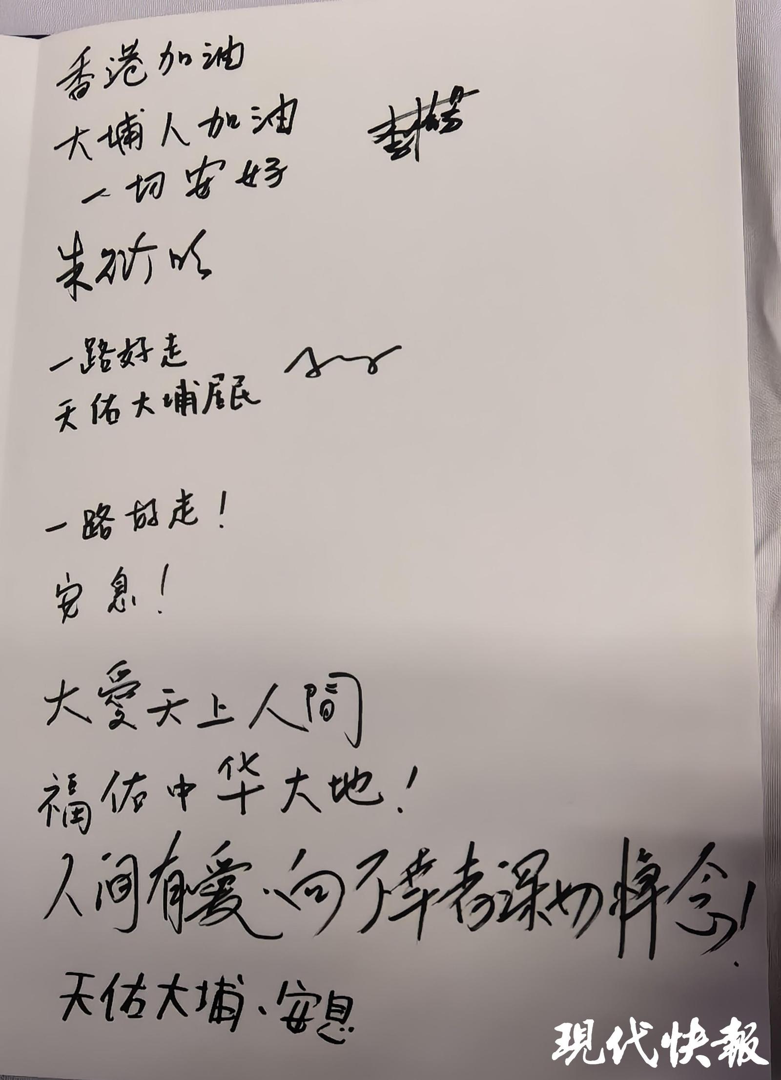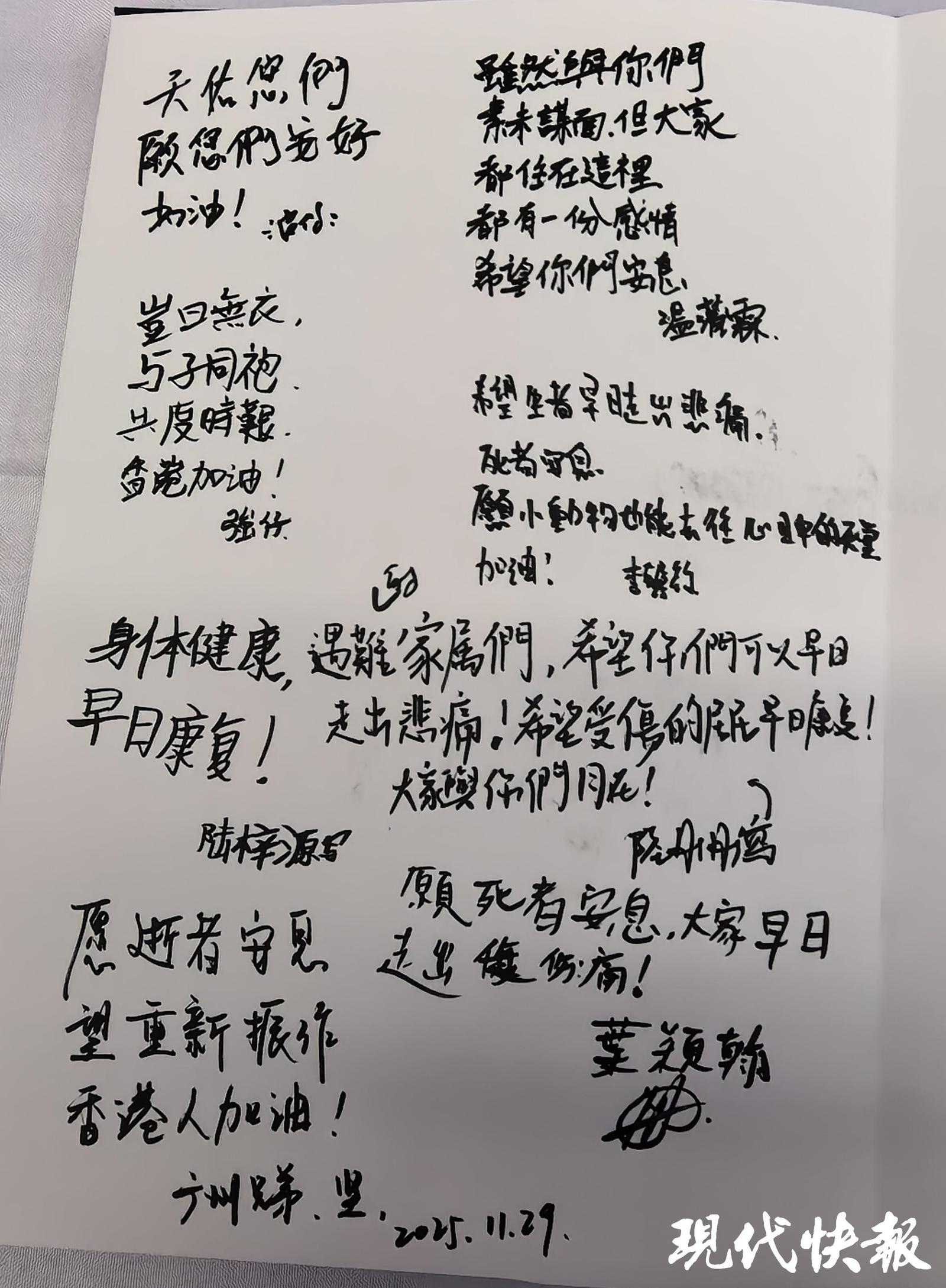 现代快报讯(记者 杜雪迎)香港大埔宏福苑火灾造成重大伤亡。11月29日,很多市民自发前往香港各吊唁处,在吊唁册上留下哀思,向逝者作最后的道别。
