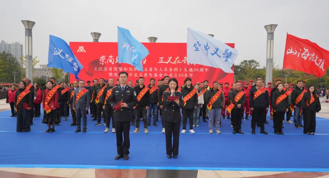 10月26日下午,《江苏省奖励和保护见义勇为人员条例》实施30周年暨连云港市见义勇为基金会成立30周年宣传日活动,在海州区苍梧绿园广场举行。