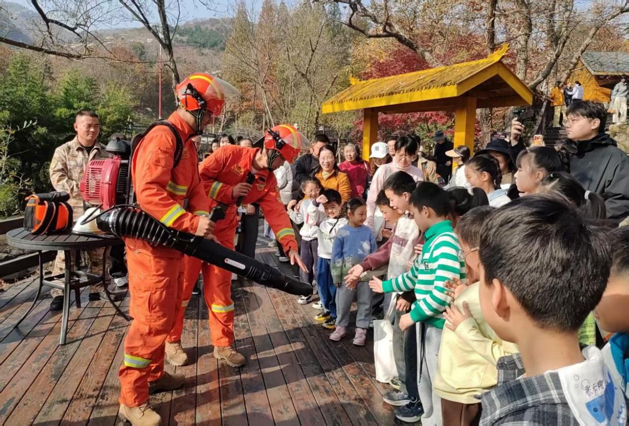 活动还特别设置了“森林防火专题科普教育”环节。南云台林场森林防火专业队向广大游客及学员普及森林防火知识,现场演示防火器材的使用,小朋友们满眼都充满着好奇,亲身体验守护森林安全的责任与使命。