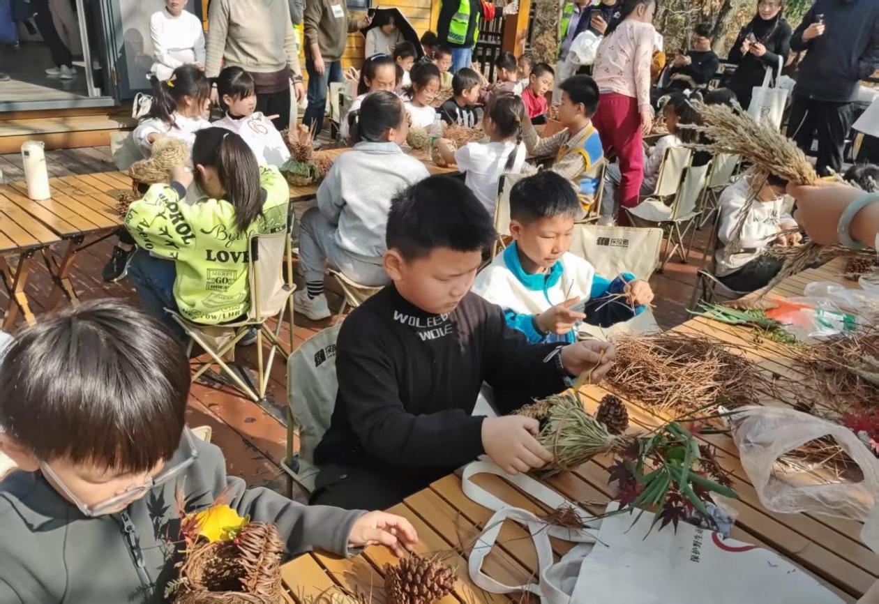 随后的“自然创作·秋日留影”手工课堂上,孩子们与家长一起动手,利用提前采集的落叶、松果和种子,精心制作并装饰人工鸟巢,将其悬挂于林间。孩子们小手灵动,认真裁剪、粘贴,每一个步骤都满含对鸟类朋友的关爱。温馨的亲子协作画面,成为林间一道动人的风景。