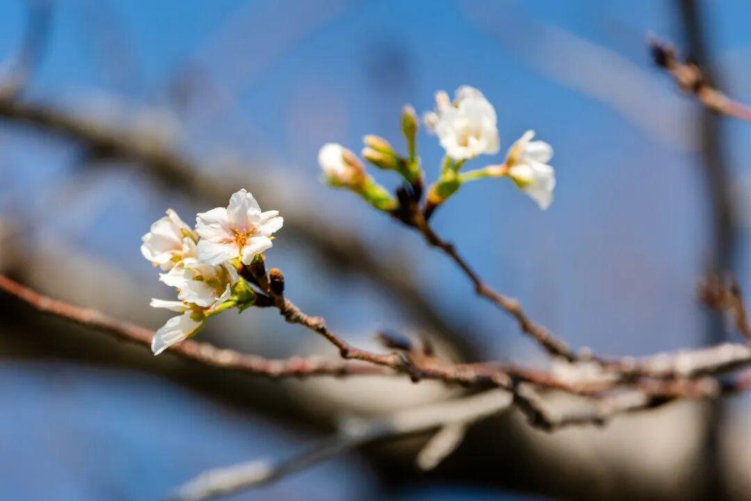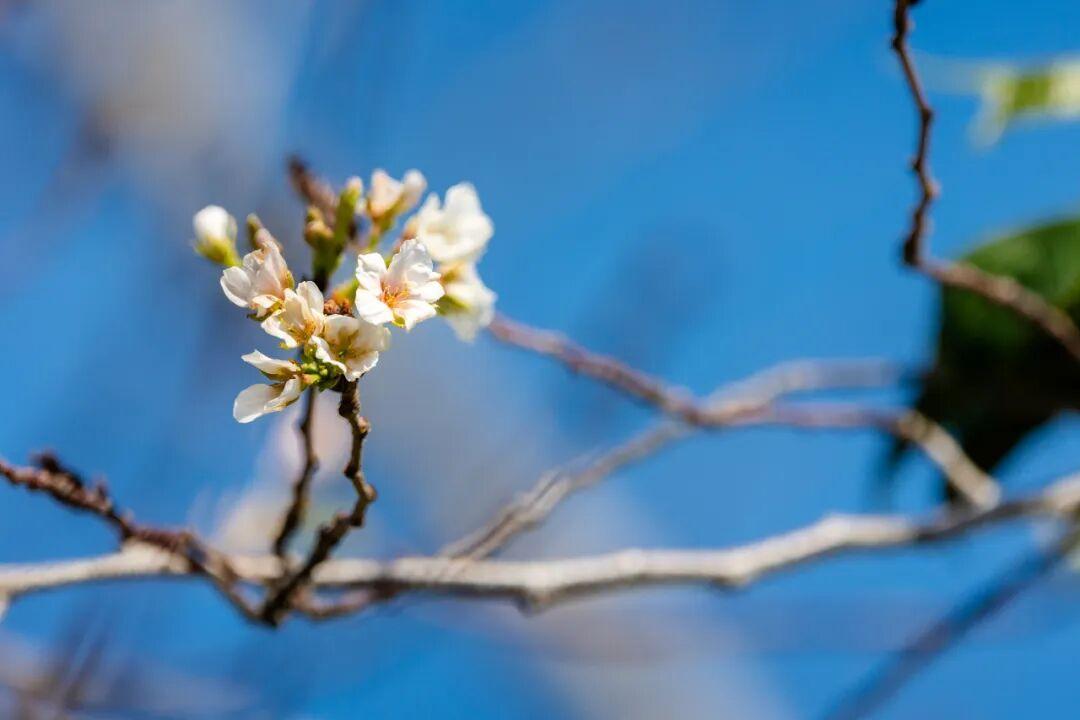 竟有樱花零星绽放