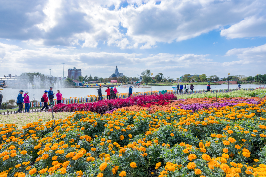 “九日重阳节,开门有菊花。”正值金秋十月,荷兰花海内百合、硫华菊、醉蝶花竞相绽放,迎来许多远道而来的游客。