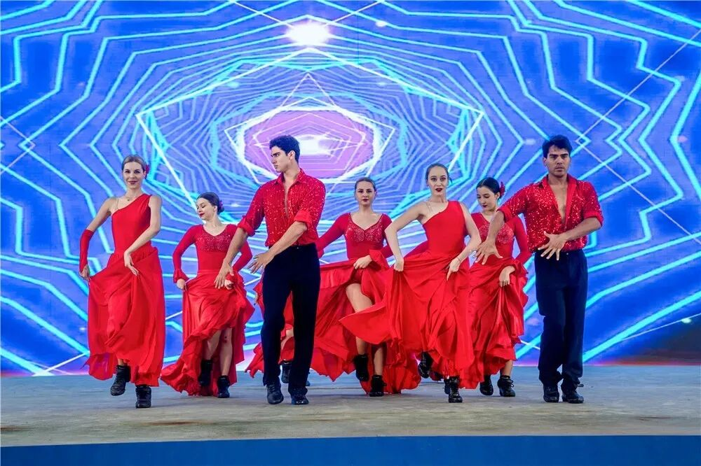 《异域风情》综艺秀,外籍舞者热情洋溢的舞姿吸引了游客驻足观看 或纷纷落座,当情景剧表演到精彩时刻,观众席响起雷鸣般的掌声,响彻整个舞台。