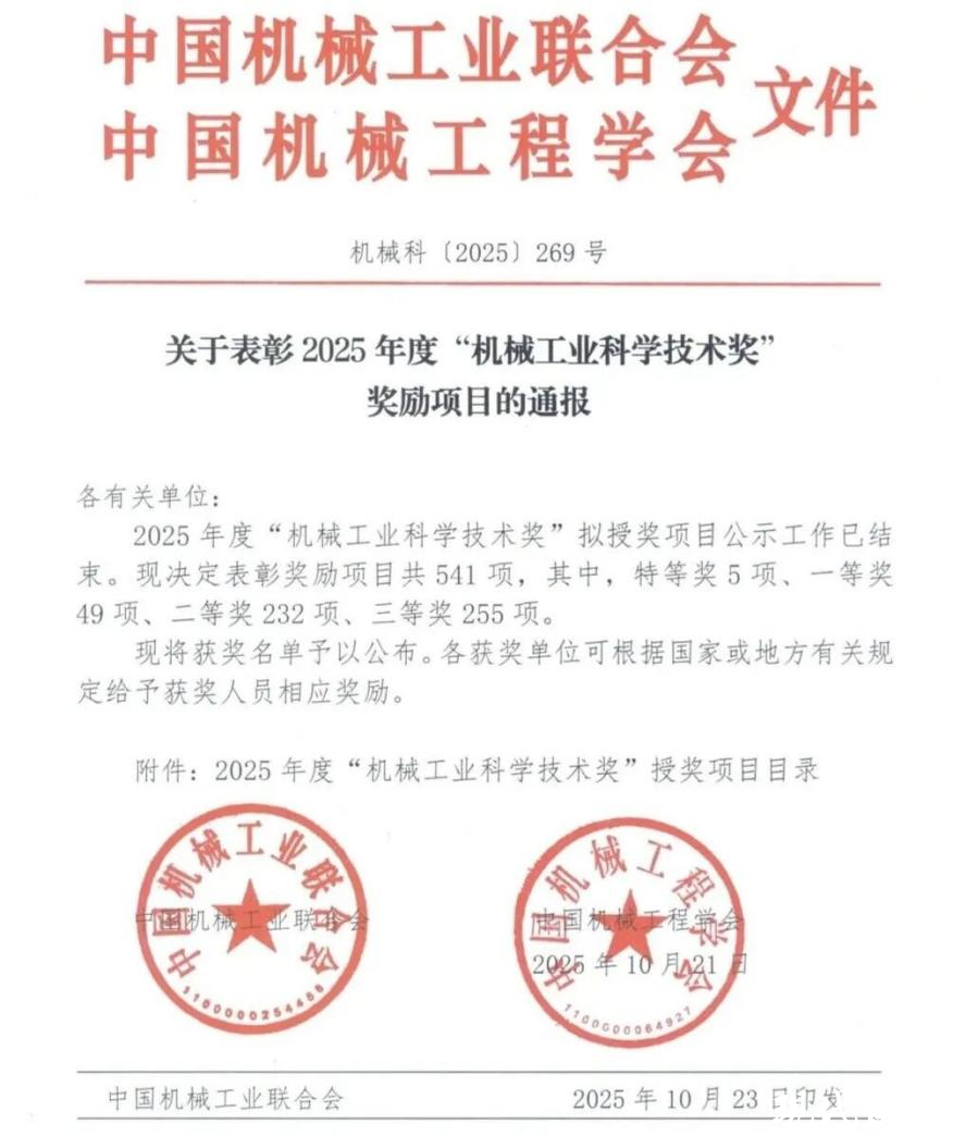 10月23日,中国机械工业联合会、中国机械工程学会联合发布2025年度“机械工业科学技术奖”。徐工集团18个项目荣获机械工业科学技术奖,其中一等奖3项、二等奖6项、三等奖9项。