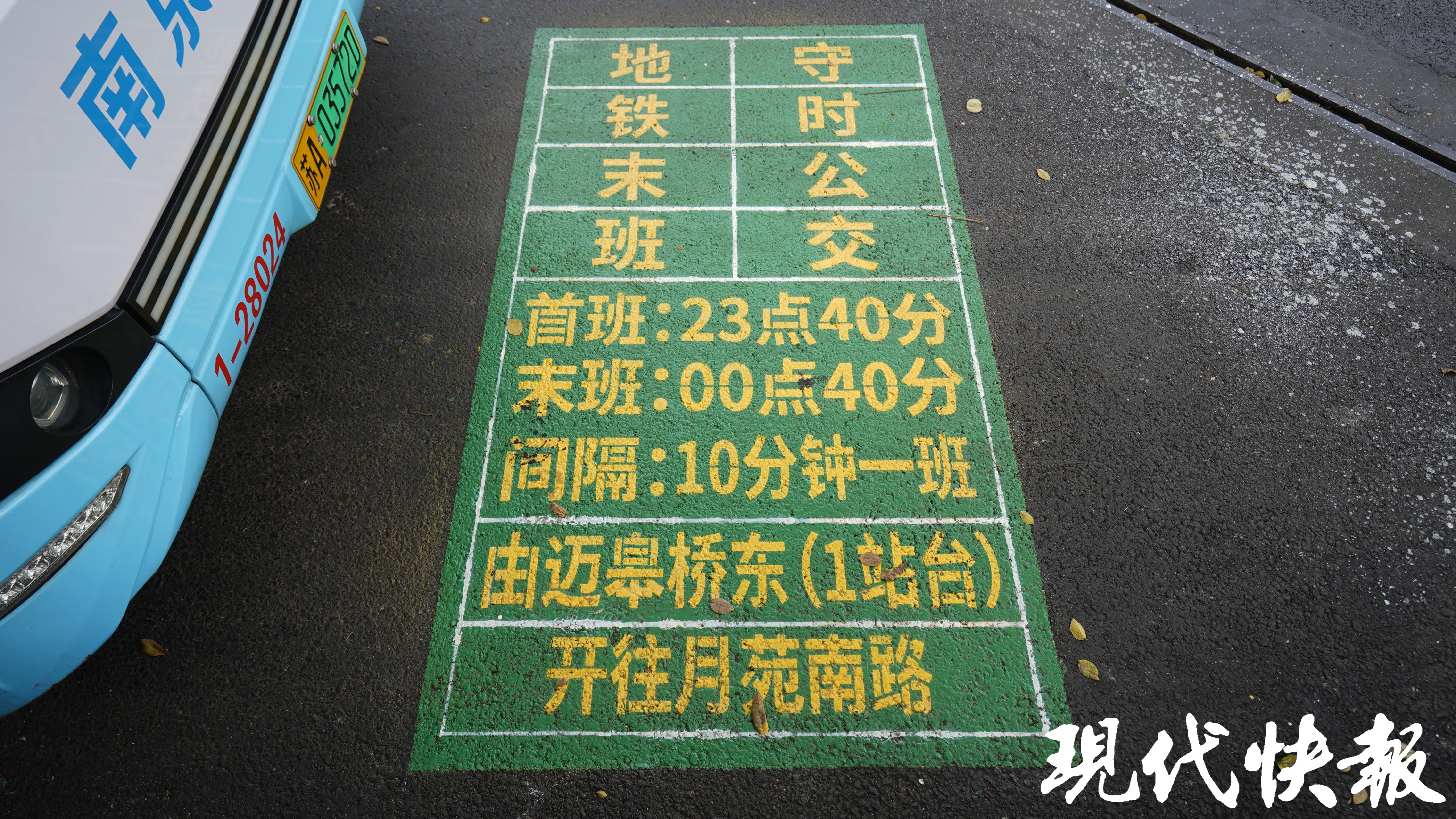 服务时间:月苑南路往迈皋桥东(1站台)方向:23:20-次日00:20;迈皋桥东(1站台)往月苑南路方向:23:40-次日00:40。