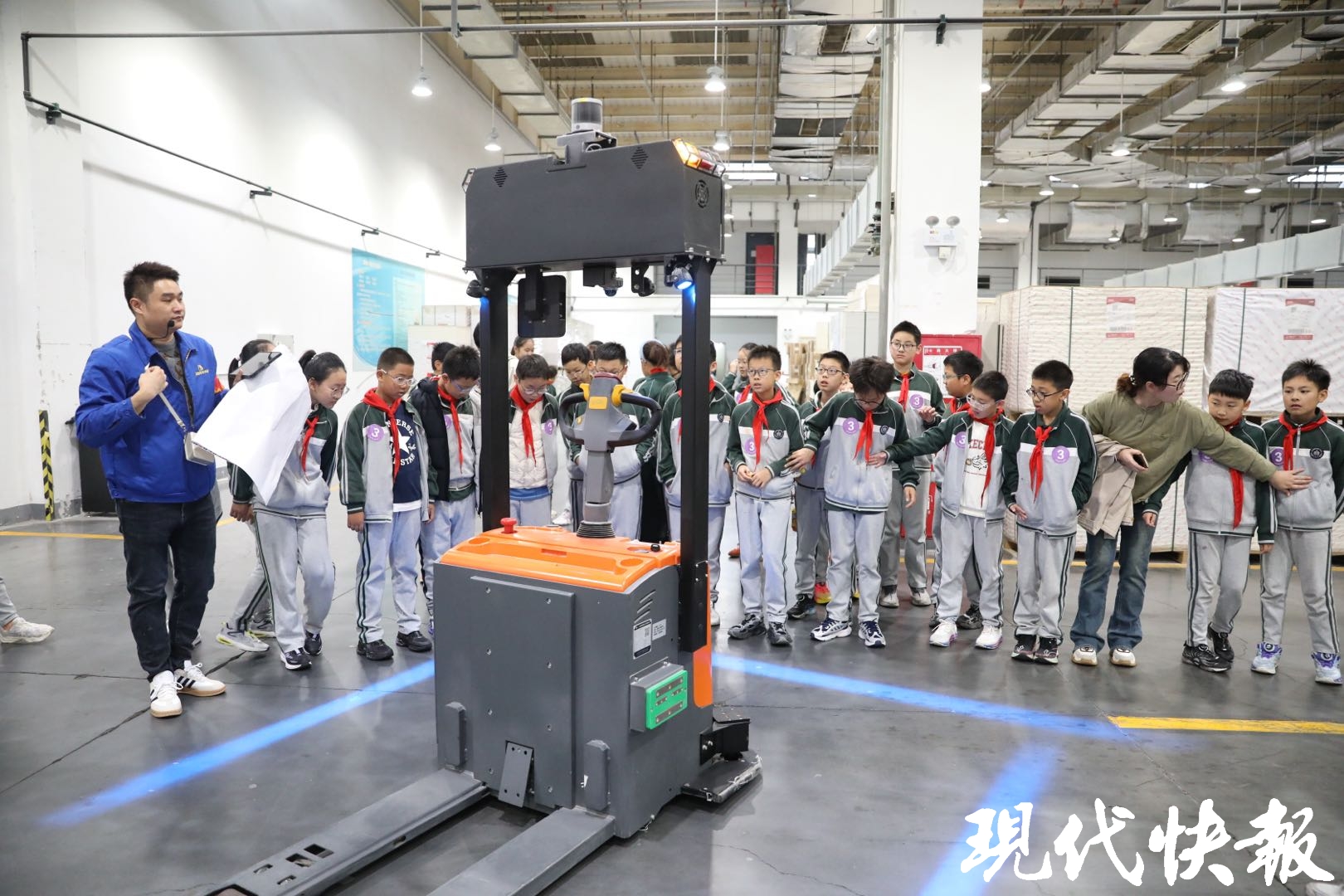 不仅如此,还有智能叉车负责运输,精准搬运成吨的图书。“就像现实版的‘机器人总动员’!”六(12)班的盛悘鑫感叹道,从古代的活字印刷到现代的智能车间,中国科技发展飞速。“我非常骄傲也非常自豪,这是我们中华文化生生不息的见证。”