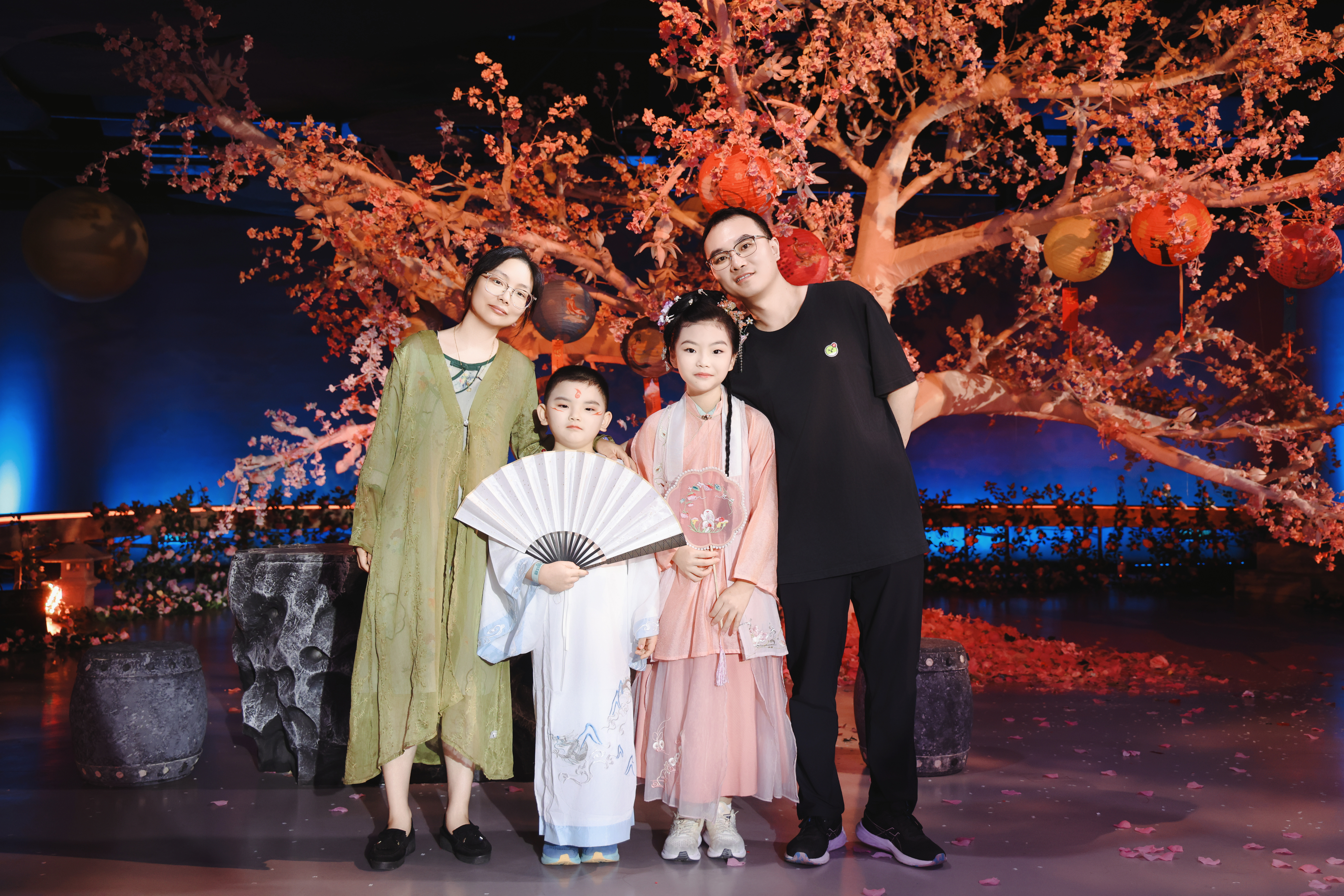 从上午首场开演,至夜场华灯初上,“大观园”中始终人流如织。穿汉服的姑娘在桃花树下拍照,一家人在说书人面前驻足,年轻人在邮局咖啡前排起长队,夜场观众在月灯装置前流连忘返……这个假期,博物馆里的中秋主题活动带着观众探寻文化根脉。