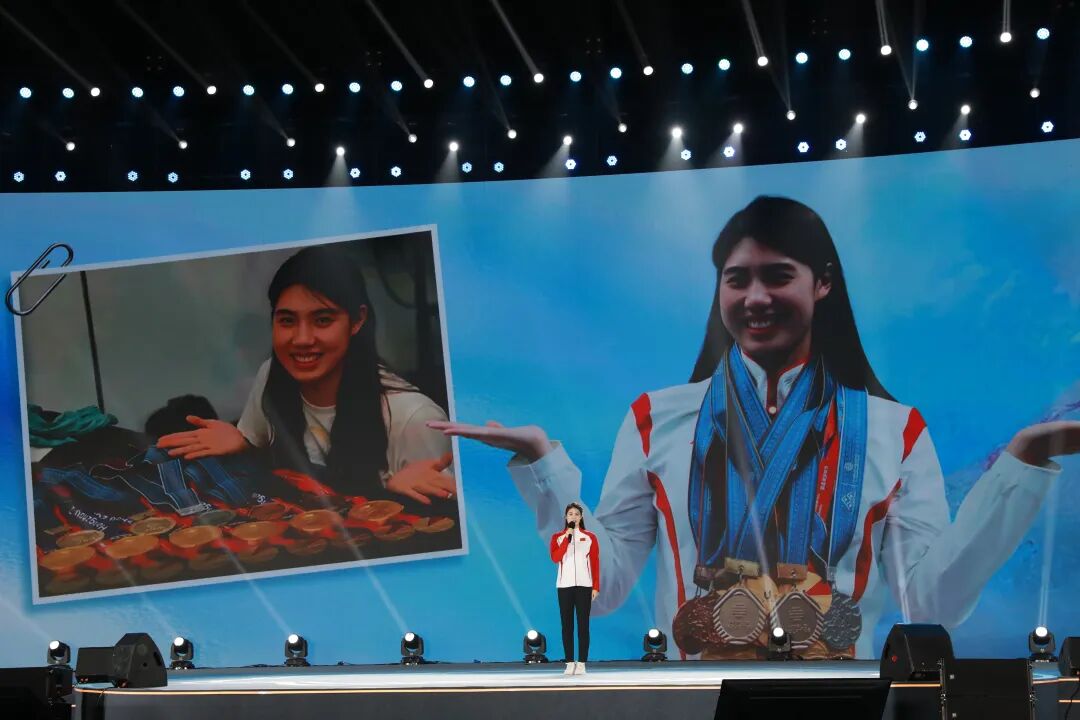 她从5岁开始专业训练,到在巴黎奥运会收获6枚奖牌,走过三届奥运,如今将目标定为“中国首位30岁站上奥运赛场的女性游泳运动员”。她鼓励青年学子:“水是我们共同的老师,它教会我们刚柔并济、中流击水。”