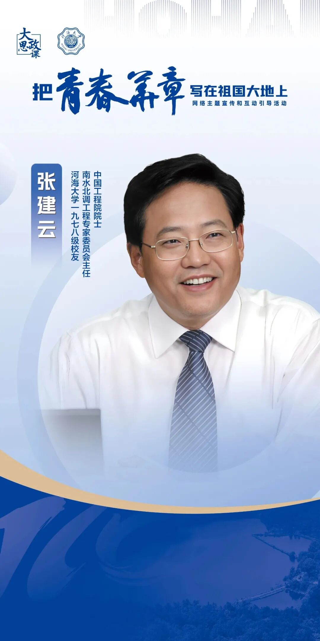 张建云院士:作为南水北调工程专家,他带领团队研发的世界最大泵站群,让长江水“逆流而上”,滋润北方1.8亿人。他说:“青年要眼里有光,脚下有路,治水兴邦,终生无悔。”