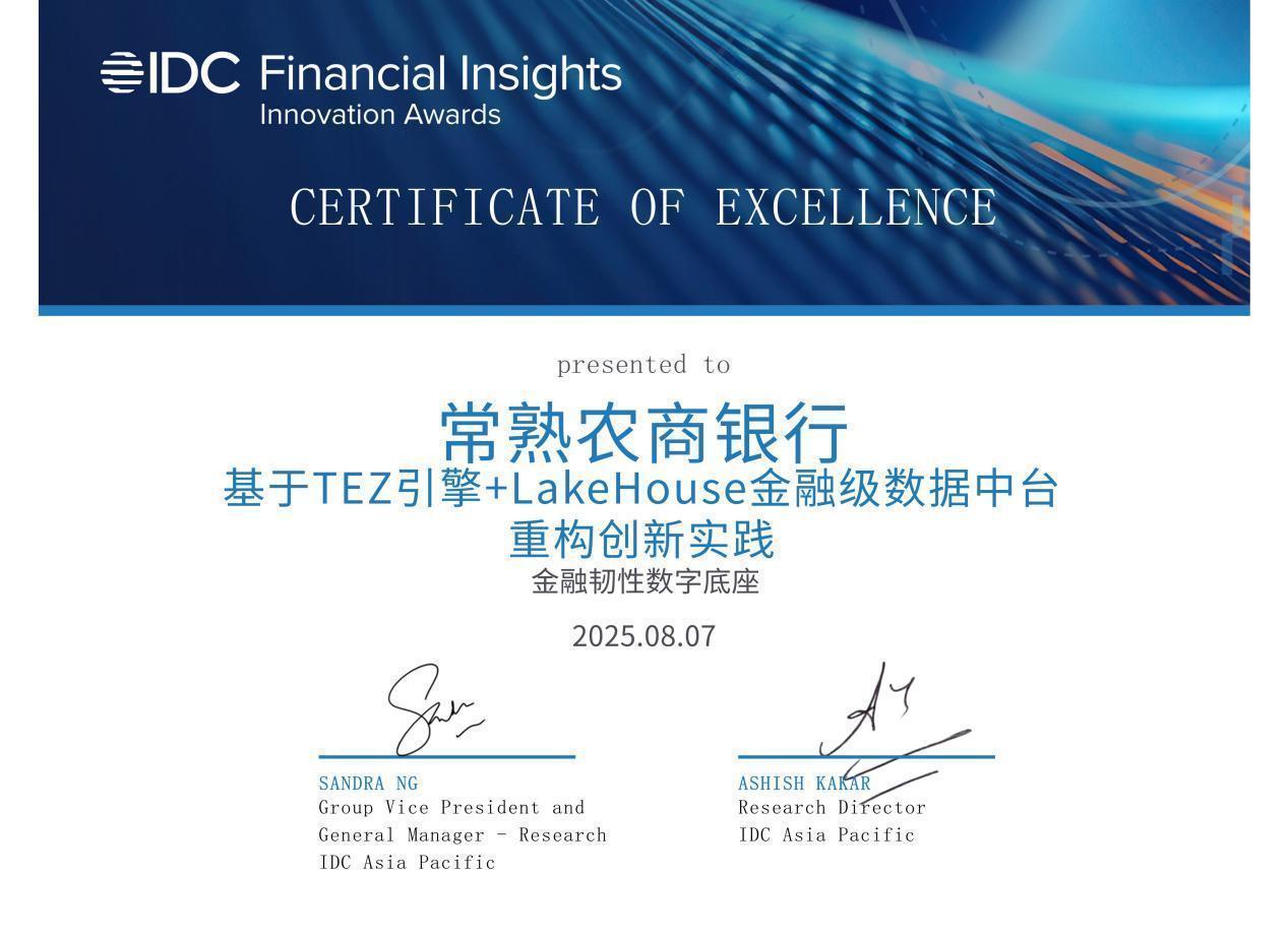 近日,由国际数据公司(IDC)主办的“中国金融行业技术应用场景创新奖”评选结果揭晓,常熟农商银行凭借其新上线的数据中台,成为本届唯一一家获奖的县域农村金融机构。此次获奖是该行自2022年新一代核心账务系统获奖以来,第二次荣膺该奖项,不仅彰显了该行在金融科技领域的领先地位,更凸显了其以技术创新持续驱动业务转型、服务实体经济的卓越能力。