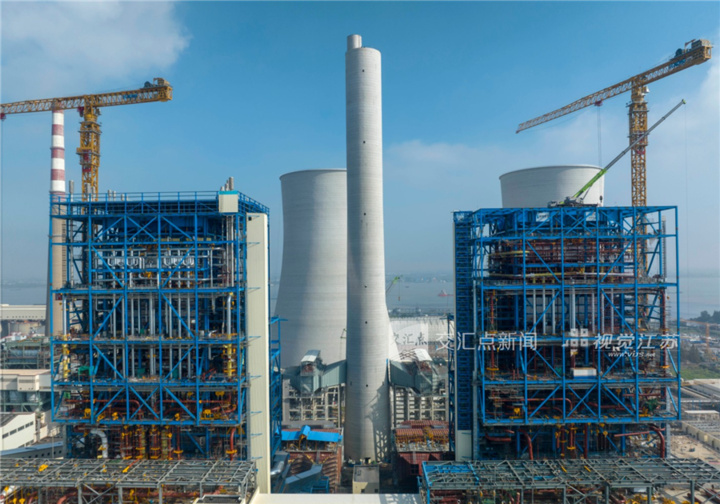 10月11日,江阴市利港2×100万千瓦机组扩建施工现场,工人们正在紧张有序作业。该项目计划今年11月并网发电,每年可向江苏南部电网送电88亿千瓦时。潘正光 摄 视觉江苏网供图