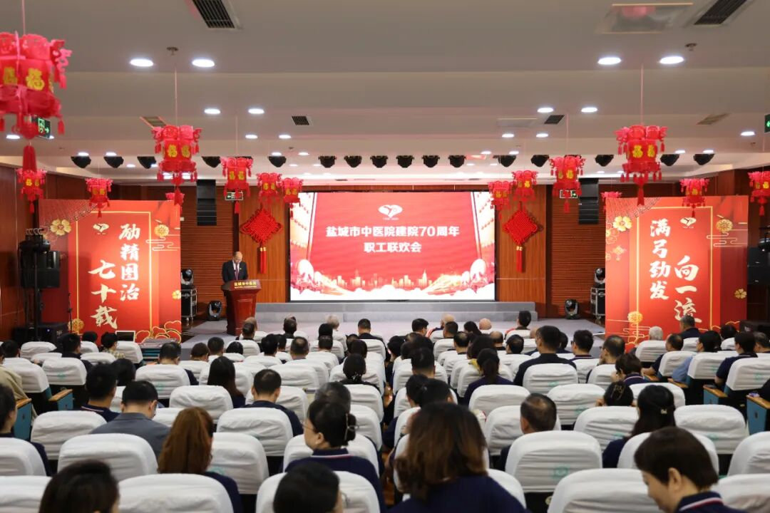 为热烈庆祝盐城市中医院建院70周年,从医院奋斗史中汲取前进的智慧和力量,充分展示该院所取得的成就,生动展现“盐中医”人团结一致、爱院如家、医者仁心的精神传承,10月19日上午,盐城市中医院召开建院70周年表扬大会暨职工联欢会。