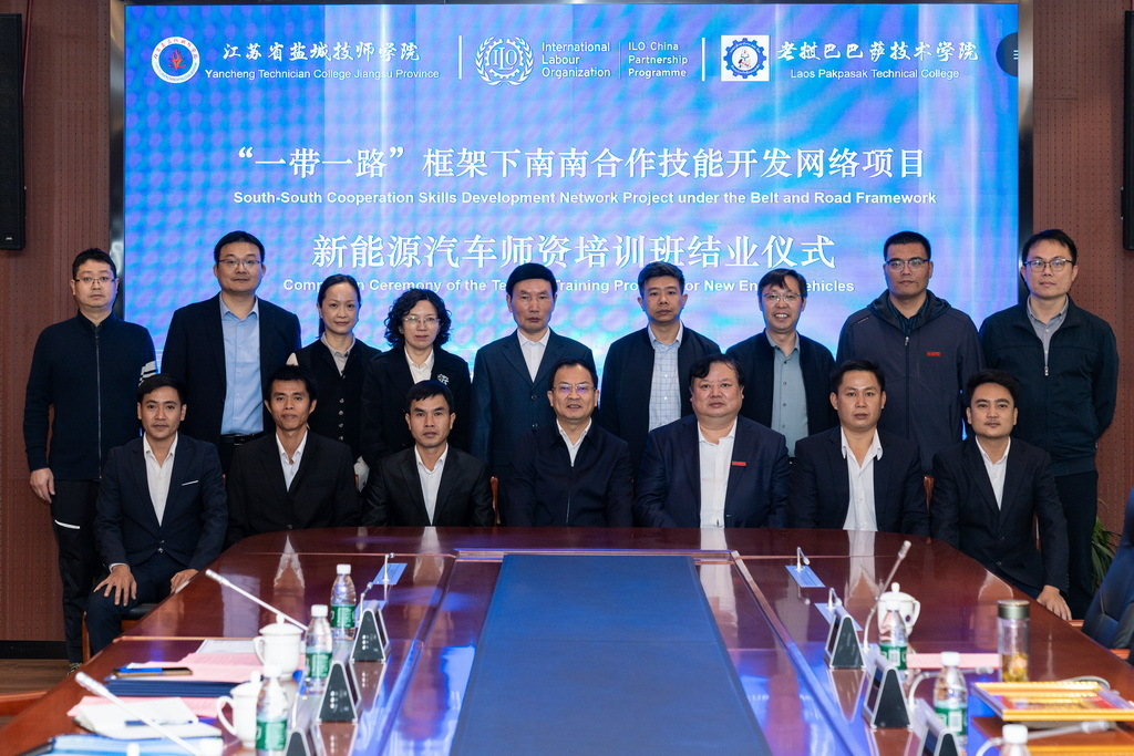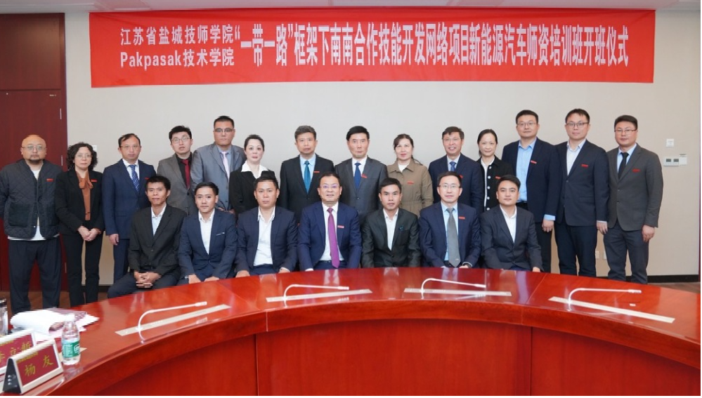 日前,盐城技师学院顺利完成“一带一路”框架下“南南合作”技能开发网络项目新能源汽车师资培训。经过9天培训,老挝巴巴萨技术学院5名教师在盐城顺利完成学业。