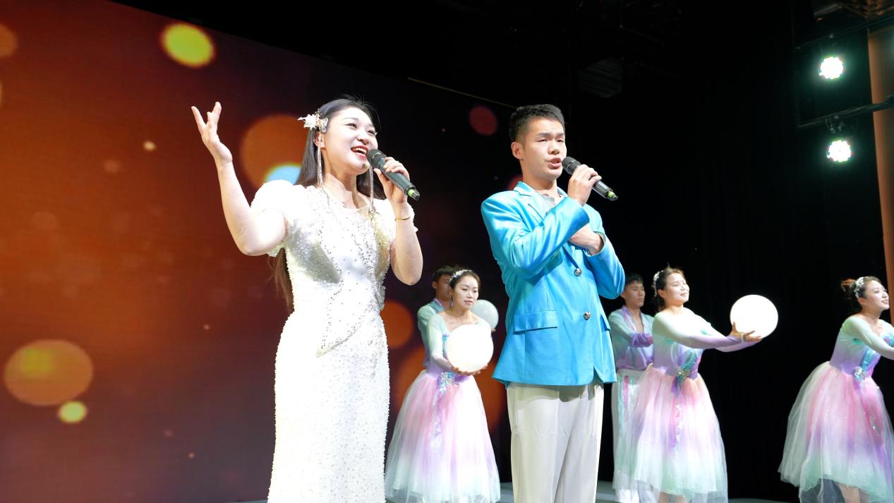 刚笑完,江苏优秀青年歌手高雅的一首《一杯美酒》,又让大家的心静了下来。她的歌声清亮甜美,像山涧的泉水,流淌在剧院的每个角落,让人陶醉。