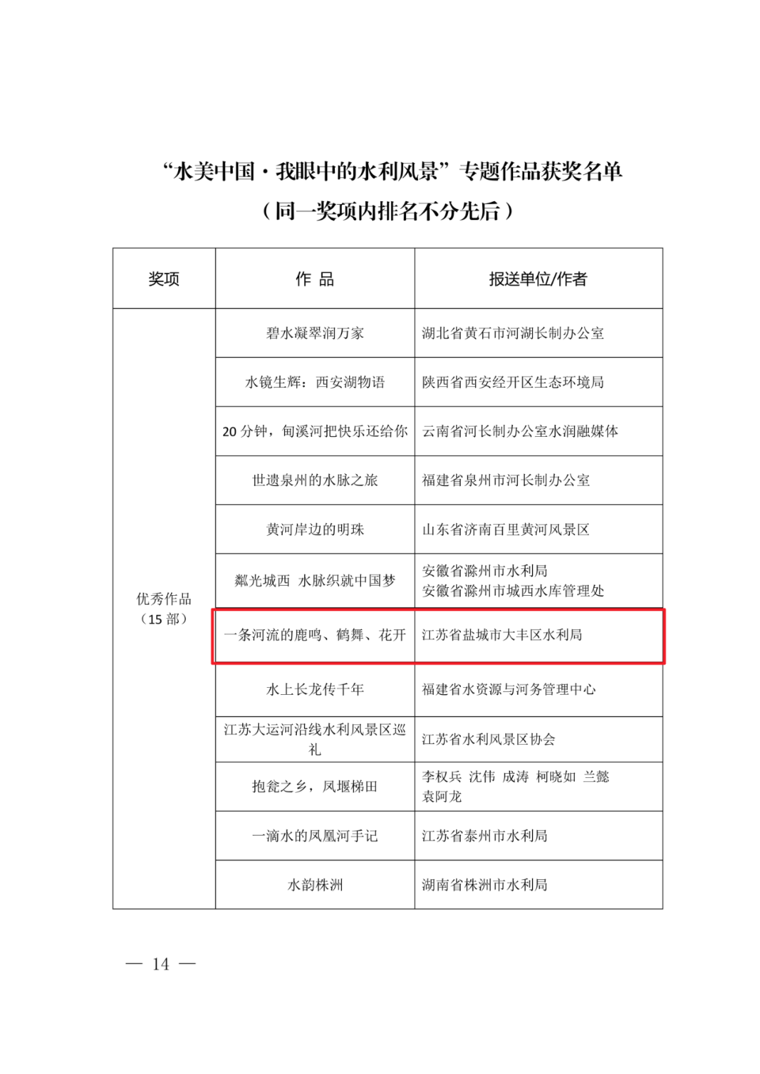 由水利部河长办指导举办的第七届“守护幸福河湖”短视频征集活动获奖名单现已公示,其中,由盐城市大丰区水利局报送的作品《一条河流的鹿鸣、鹤舞、花开》入选“水美中国·我眼中的水利风景”专题优秀作品。