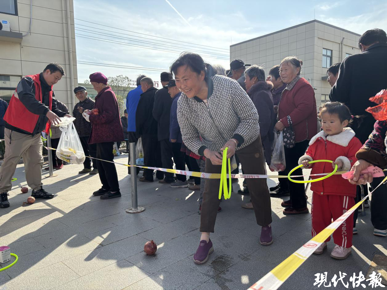 活动现场准备的奖品堪称“接地气”——泡面、饮料、新鲜蔬果、洗洁精、纸巾、米面油等生活必需品整齐摆放,一下勾起了老人们的参与热情。“时兴亮真厉害,刚一套就中了一桶油。”“才过去1小时,他就套走4桶食用油、两箱方便面,太牛了!”此起彼伏的赞叹声、欢呼声吸引了路过群众驻足围观,不少人掏出手机拍照录像,记录下这热闹非凡的瞬间。
