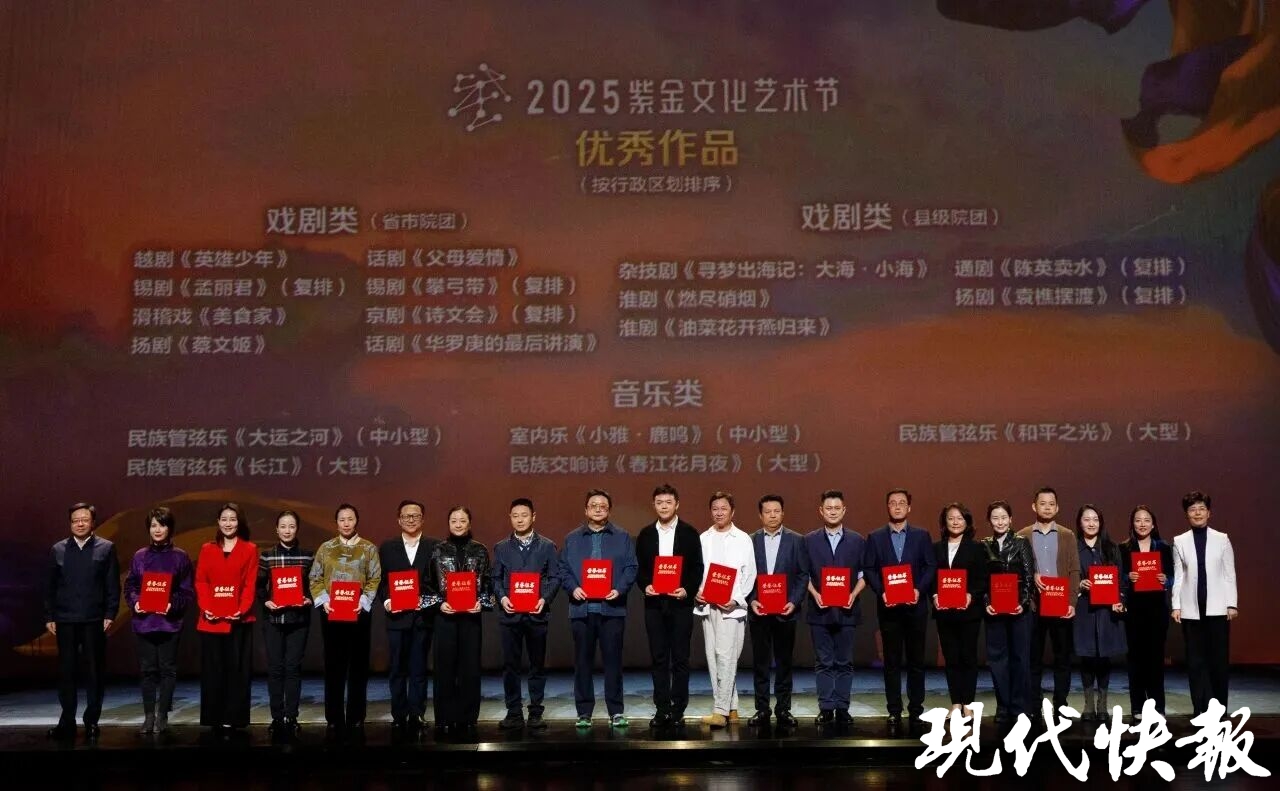现代快报讯(记者 毛晓华 通讯员 新萱)10月28日,2025紫金文化艺术节在南京江苏大剧院圆满落幕。由中共兴化市委宣传部、兴化市文体广电和旅游局出品,兴化市淮剧团创演的现代淮剧《油菜花开燕归来》凭借其精湛的艺术水准与深刻的时代内涵,从众多参评作品中脱颖而出,一举摘得“优秀作品”“优秀演员”两项大奖。