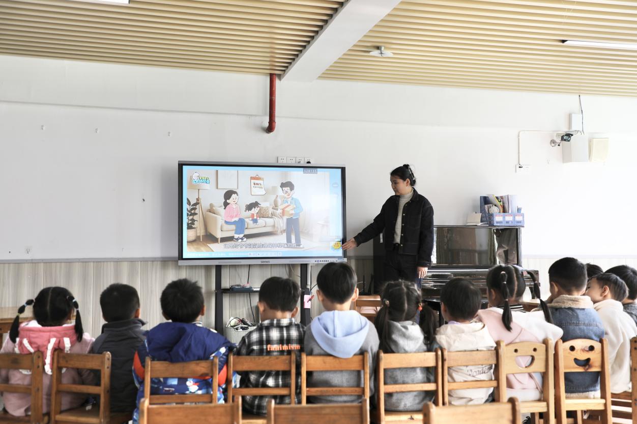 大班则以“经典浸润”表达情感,孩子们齐声朗诵《中华孝道》,或是跟着音乐跳起《爷爷奶奶辛苦了》手势舞,稚嫩的声音与整齐的动作,让镜头里的画面满是温情。