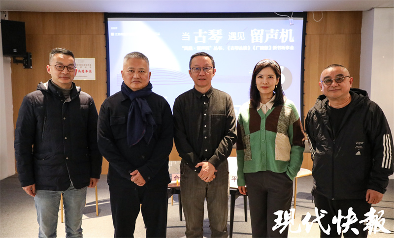 现代快报讯(记者 郑文静)11月12日,一场别开生面的新书听享会在南京奇点书集举办。听享会形式新颖,以三首古典乐和一首古琴音乐为线索,展开中西方古典乐的对话,打破阅读的边界,让读者走进音乐和艺术的现场,建构中西方古典乐碰撞的新场域,探寻传播中华优秀传统文化的新形式。活动邀请“凤凰·留声机”丛书总策划佘江涛、《广陵散》《古琴丛谈》作者郭平为对谈嘉宾,芥墨艺术馆馆长、形桐琴斫琴人鲁文为特邀嘉宾,并由江苏凤凰文艺出版社副社长、阅读推广人孙茜担任嘉宾主持。