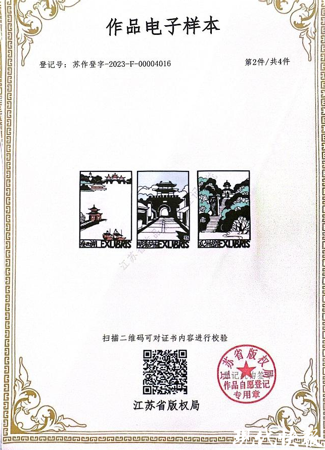 藏书票制作过程中,公司青年员工与民间手艺人相互交流讨论,最终选择应用苏州的手工纸、常州的龙泉印泥、安徽的手工松烟墨等材料,并结合扬州的雕版进行制作,将扬州剪纸、清代扬州画派、扬州篆刻等民间文艺元素融入其中。