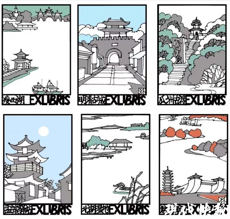 于是,公司便以“运河十二景”为创作题材,设计了这套“运河十二景”藏书票。由4人参与设计,采用雕版印刷、剪纸的艺术表现手法,提取各景点艺术特色与地标建筑风光。