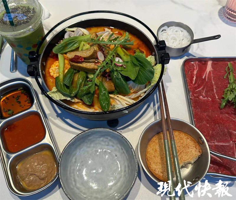 6月6日中午,现代快报记者来到位于南京新街口的一家轻食店,店内除了常规的蔬菜沙拉外,店内还售有轻食火锅。