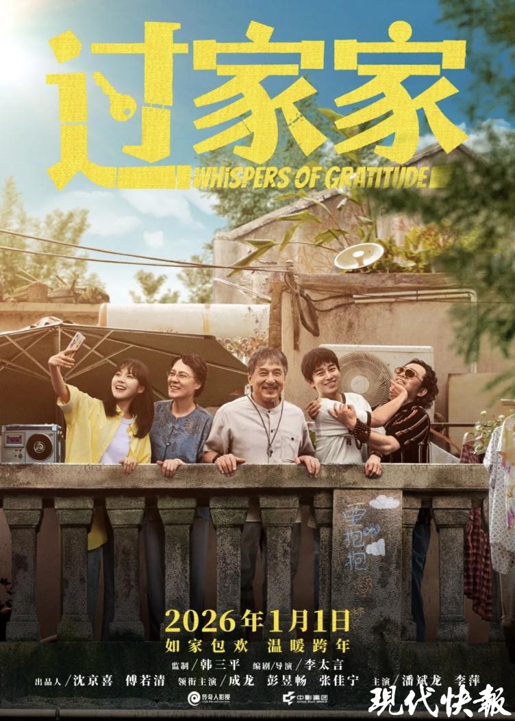 现代快报讯(通讯员 吴俊翔 记者 刘媛)近日,成龙、彭昱畅、张佳宁领衔主演的电影《过家家》已正式定档2026年1月1日全国上映。电影由兴化籍企业家、泰州市电影家协会名誉主席沈京喜担任出品人、总制片人。近期,他所创办的武汉传奇人影视艺术有限公司凭借多部重磅影视作品持续引发关注,彰显了泰州企业家在文化影视领域的深厚积淀与蓬勃创造力。