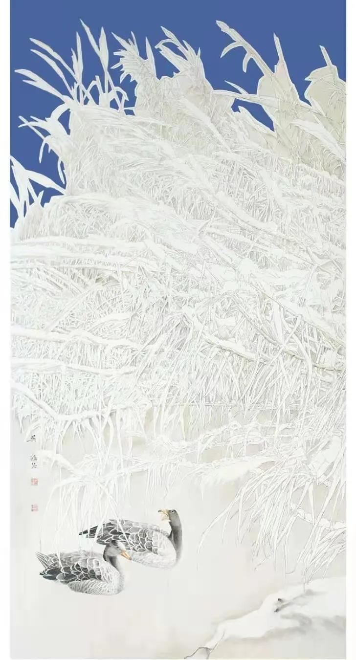 没有高山的巍峨峻拔,没有大江的奔腾激越,旷远到极目都是海阔天空,宁静到充耳只有鸟语虫鸣。芦苇婆娑、瑞鹤曼舞,茫茫湿地让水也温驯,风也柔情。当丹青妙手踏进滩涂的安详,让笔也生花,人也空灵。无论美髯当胸还是长发披肩,无论芦芽初短还是蒹葭苍苍,背起画夹一路向东,连肩扛朝晖的背影也美成了一幅画。承接着本土地气、豪气、文气的坚挺,浸淫着海上画派、金陵画派、吴门画派的濡染,于是,“湿地画派”在黄海沿岸的自然生态与文化生态地平线上冉冉而起。这里有一片令人神往的神秘土地,一群活跃于当代画坛的高手。人们满怀期许:浓浓的乡情何以呈现于艺术?艺术的殿堂闪烁着多少盐阜画家的星光?