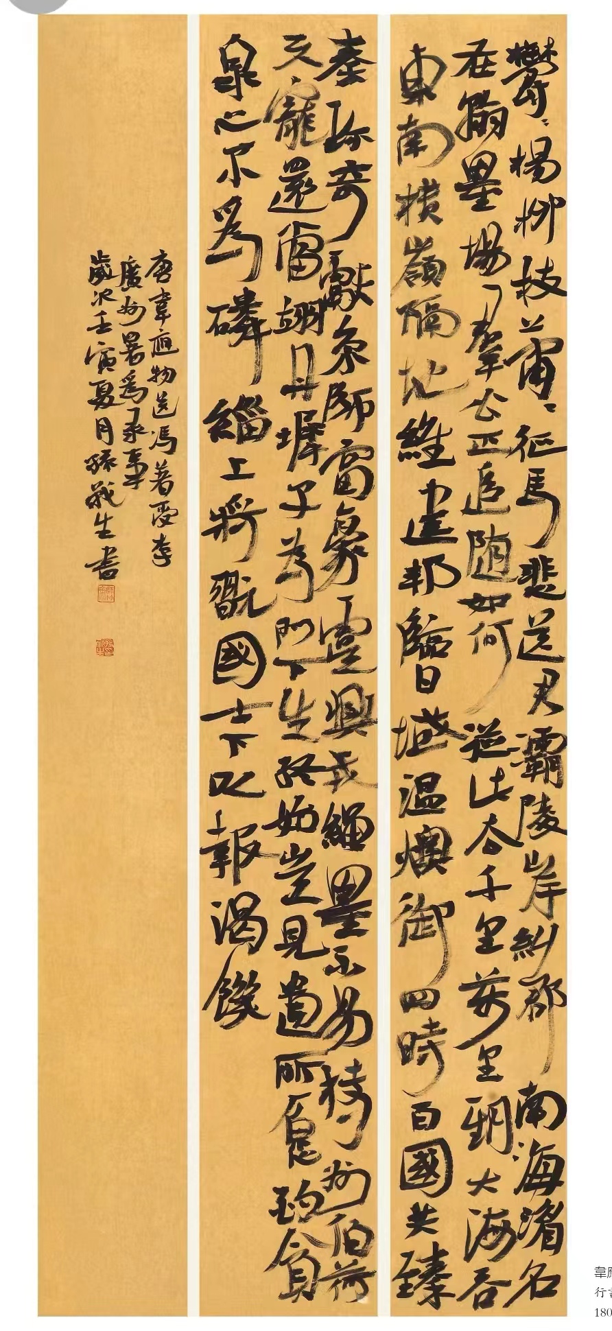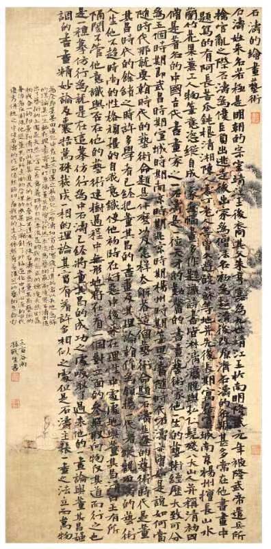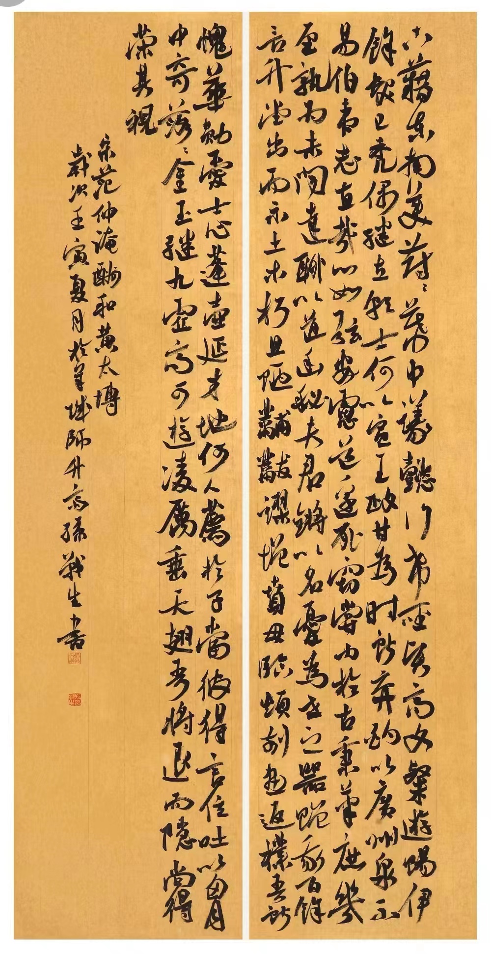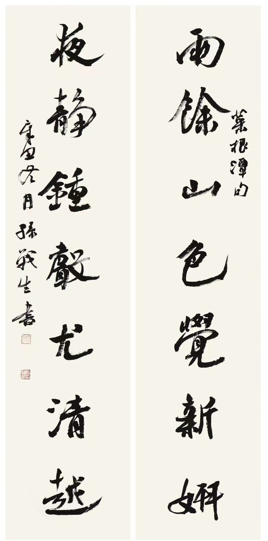 孙战生书法技艺各体皆擅。他的行草作品或“崇山峻岭”,或“原驰蜡象”,或“老树枯藤”,尽展“北国风光”。笔法精妙、雄劲老辣,章法新颖独特,气韵生动而意境深远,既彰显出人文精神与文化情怀,又营造出意趣高远、风骨凛然、苍劲挺拔的气势;既注重艺术结构的方正典雅、静中取动、刚柔相兼,又蕴涵着深邃的意境和深刻的哲思;既追求跌宕起伏的视觉冲击力,又在气韵和技法上创造出书法的大气和精致。