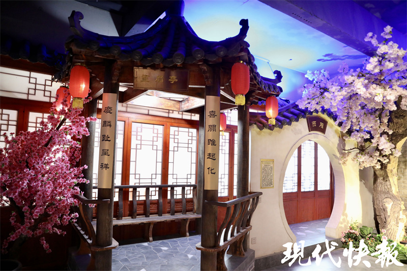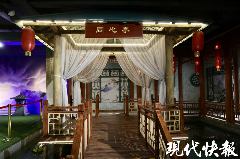 博物馆共分为两层,一层为婚史区,讲述汉代成婚的礼仪等;二层为婚恋区,讲述的是汉代婚恋的相关礼节。现代快报记者注意到,馆内以场景展示为主,有月老祠、同心亭、红袖添香、帝宫欢、汉阙四柱、冠笄小院、六礼长廊、画眉亭、结发偕老等多个场景,追寻楚韵汉风的遗韵,体会烟火人生。