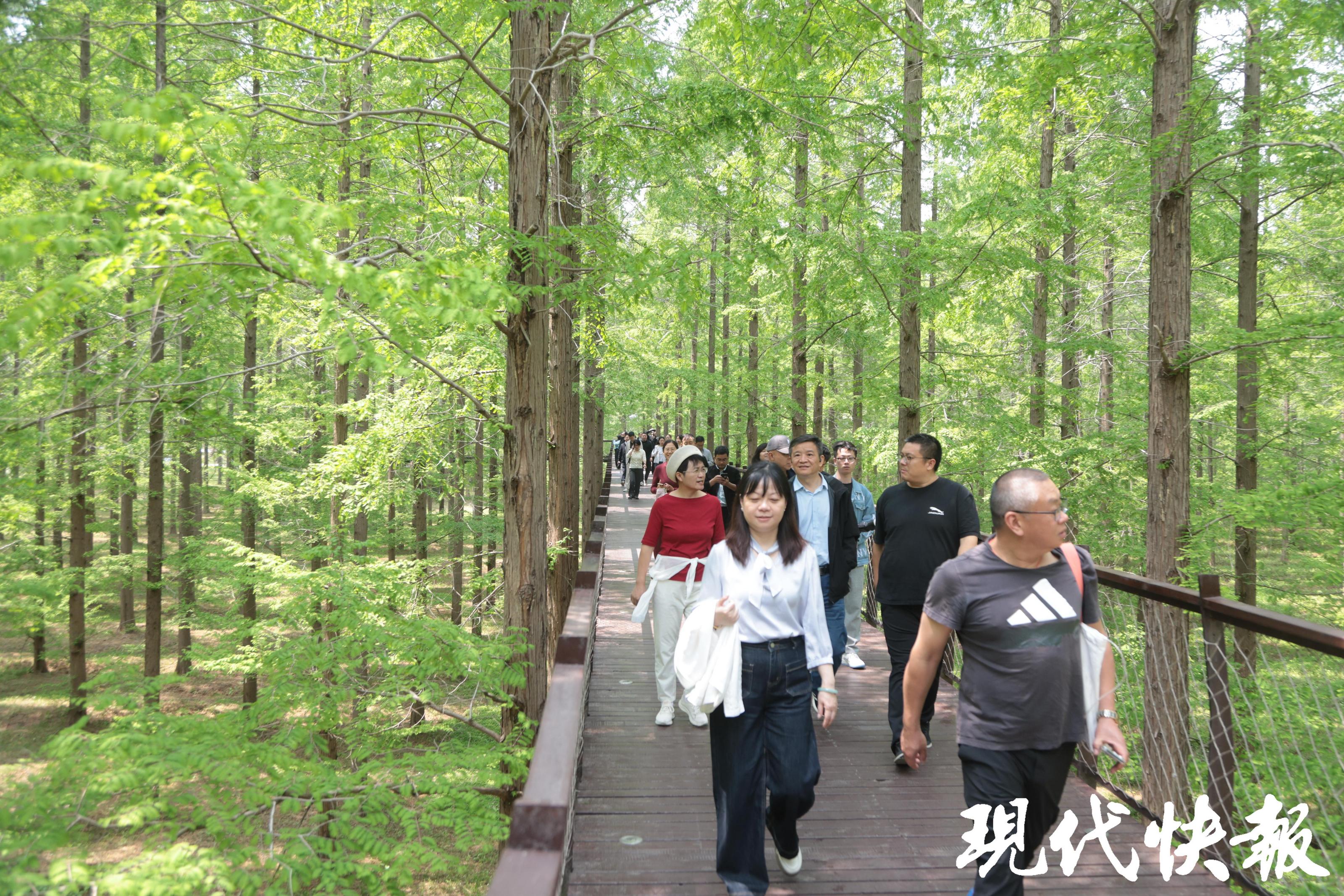 “太漂亮了!这里践行了绿水青山就是金山银山的理念,水杉树很高大茂密,负氧离子的含量很高,来到这里我的身心都非常愉悦,很适合家庭出游。”津云品牌部主任王琳首见黄海森林乐开了花,“我一定要带家人来玩”。