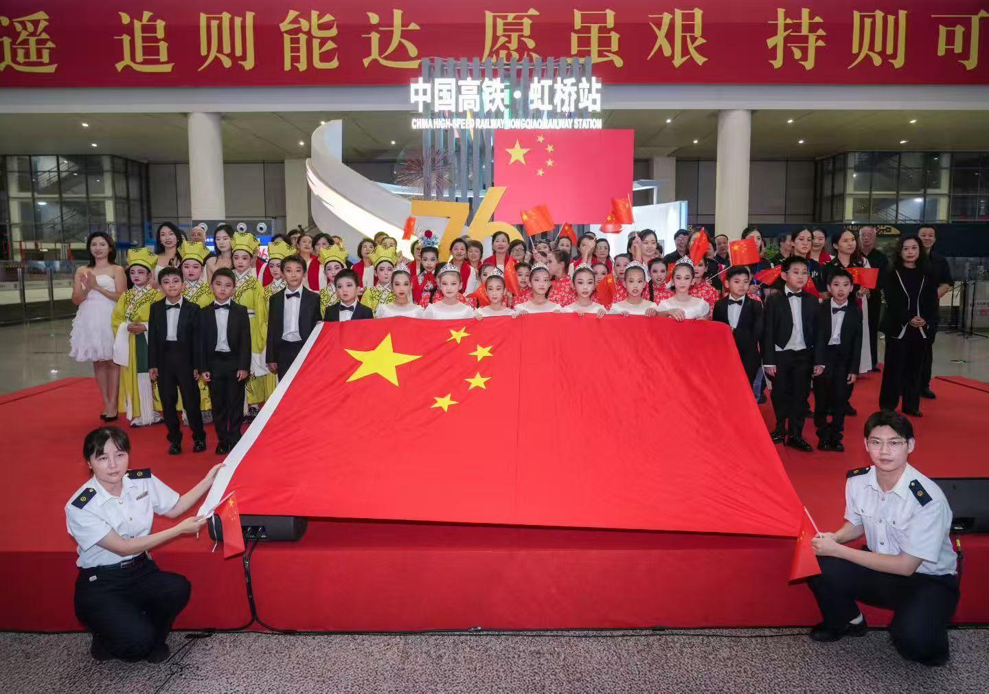 上海虹桥站举办“迎国庆”主题快闪活动。过运松 摄