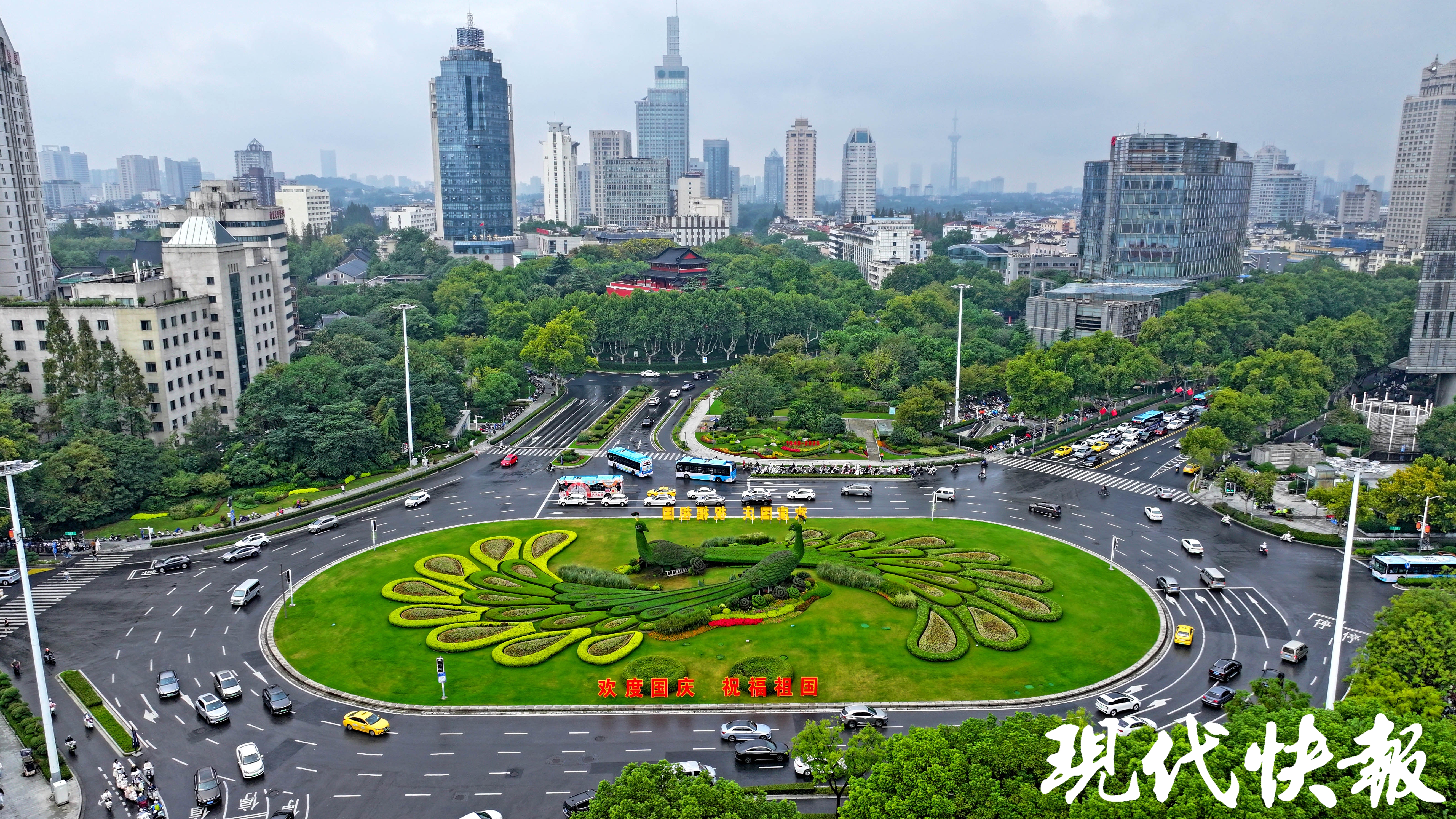 氛围感拉满,南京鼓楼广场“国庆妆”上新