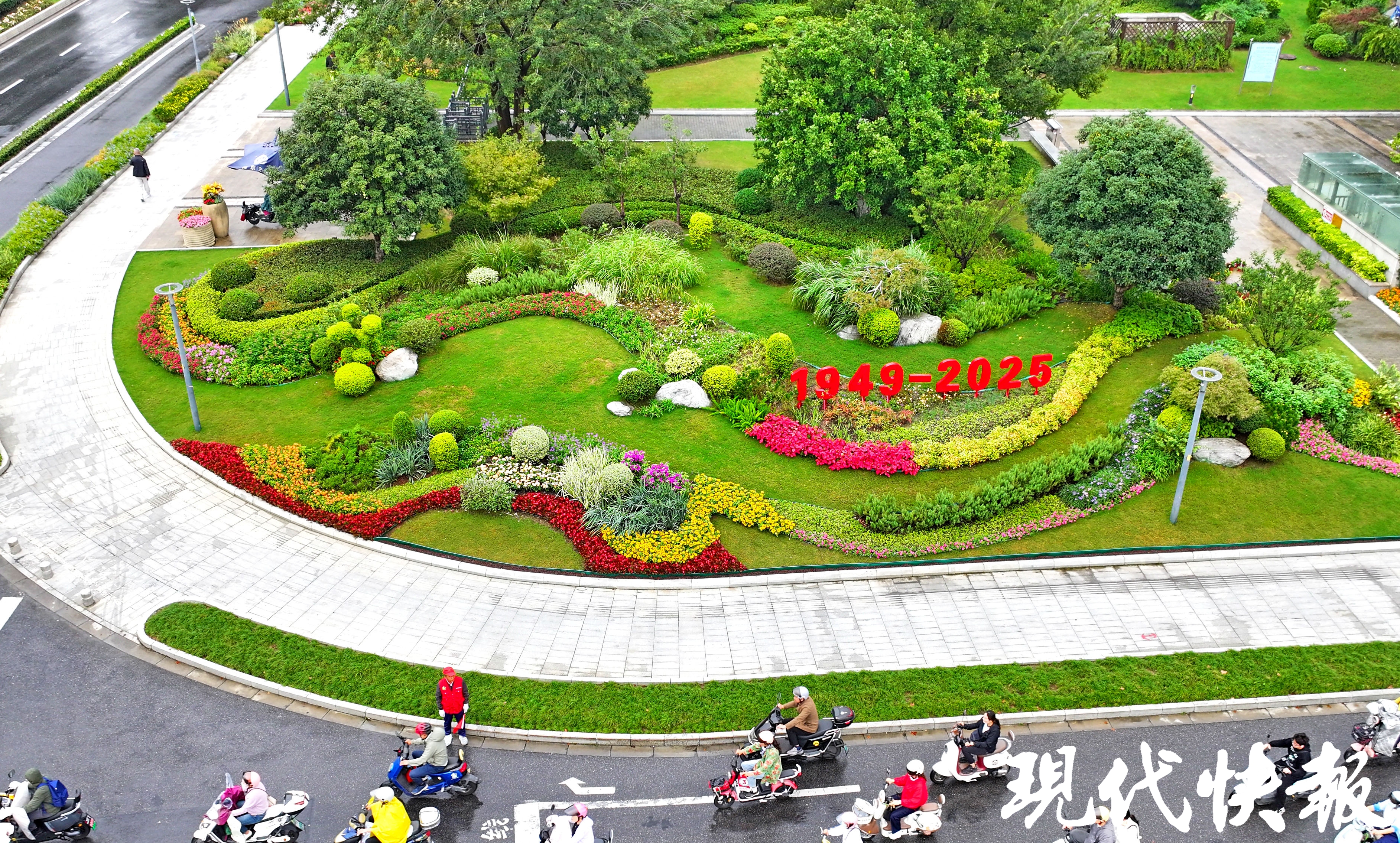 广场西南角的绿地之上,亮眼的“1949—2025”红色标牌矗立其间,既镌刻着时光的厚重,也传递着对祖国发展的美好期许,引得过往市民、游客纷纷驻足。