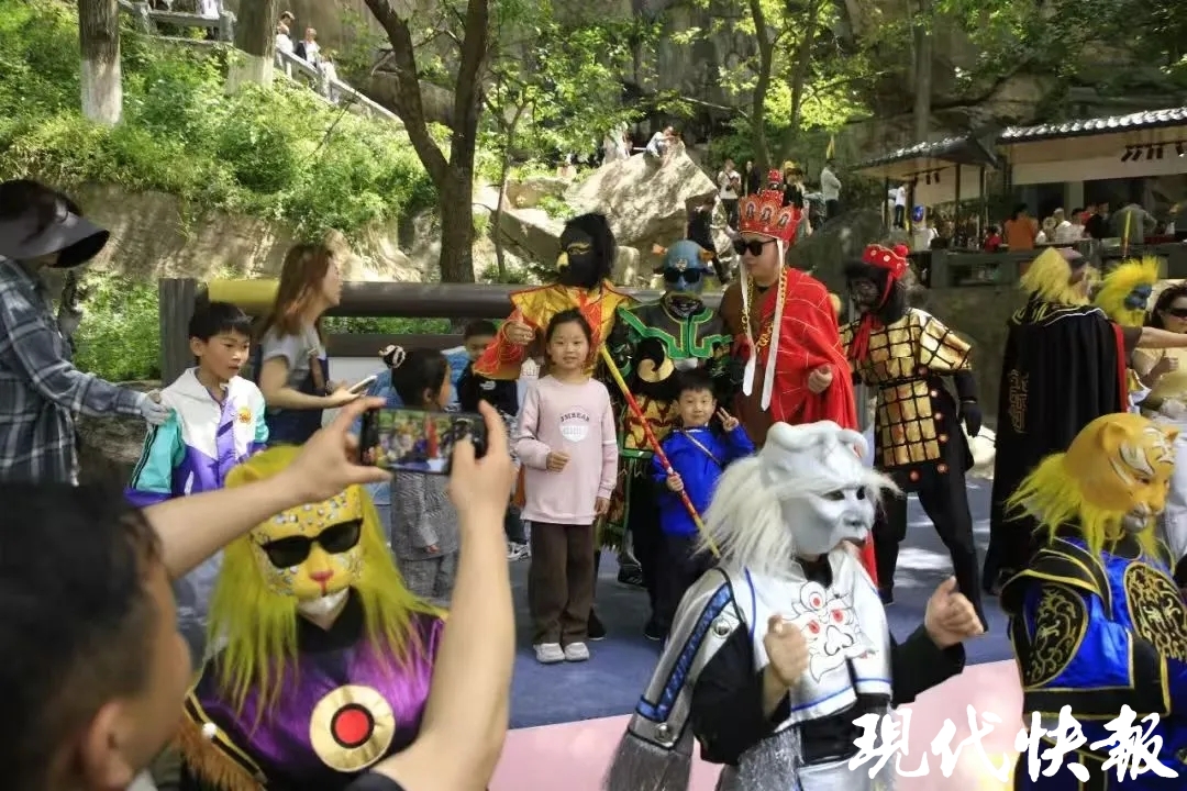 花果山景区立足文旅融合新风口,依托整个山地走势和科学点位,划分了“游客中心演出区”“玉女峰演出区”“怪石园互动区”“水帘洞沉浸区”等四大互动区域,游客可参与西游神魔巡游、快闪、《三打白骨精》情景剧等互动环节。渔湾景区则分白场和夜场,晚上主打“团圆火锅宴”和“梦幻渔湾”演出,边吃火锅边赏月边看演出;白天主打“萌宠马戏总动员”“溯溪飞拉达”竞技,还有奇幻乐园和潮玩运动馆的“宝藏内容”。