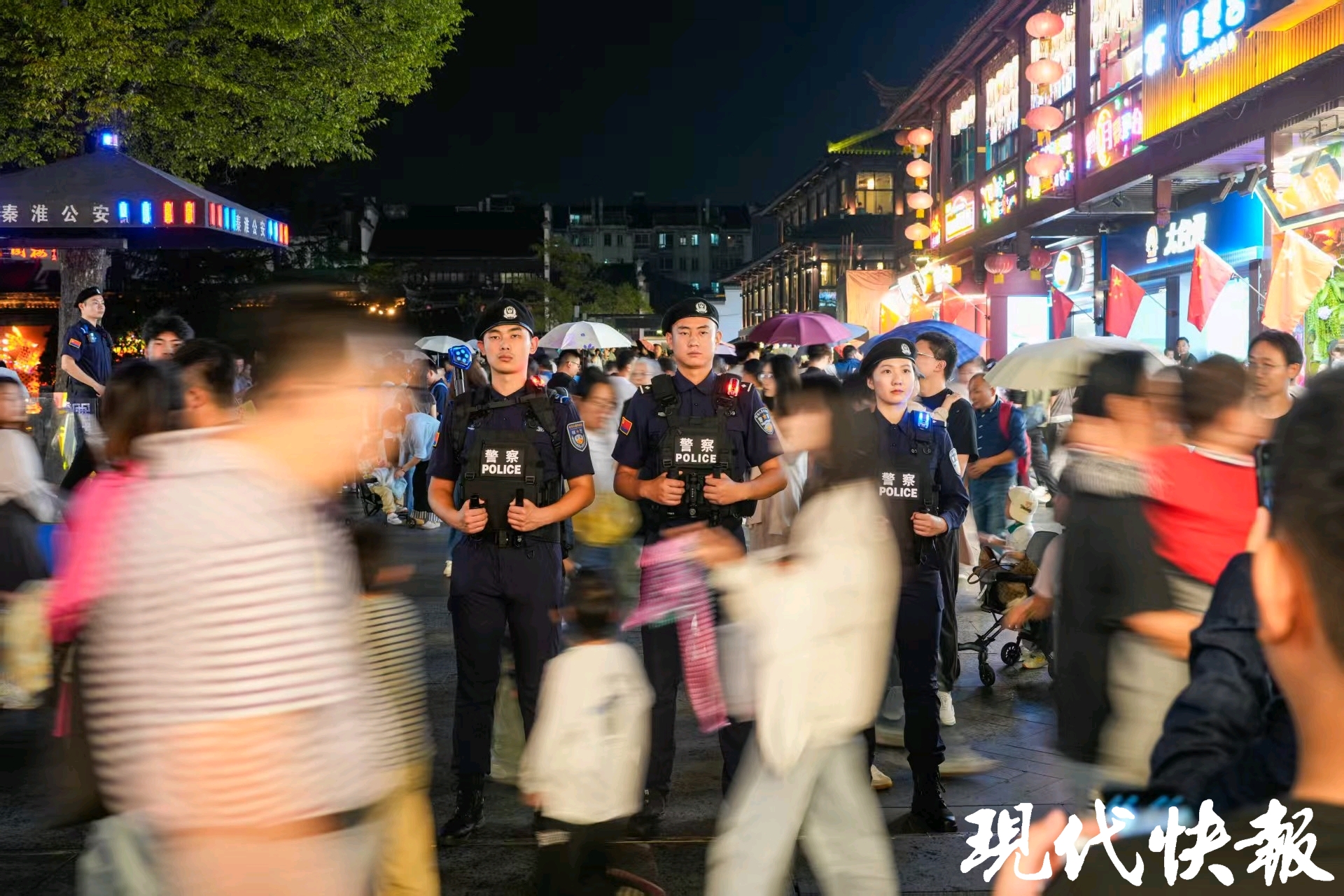 现代快报讯(通讯员 秦公轩 记者 季雨)金秋十月,举国同庆。坐落于南京秦淮河畔的夫子庙景区,再度迎来旅游高峰。古色古香的建筑与喜庆的国庆装饰交相辉映,八方游客慕名而来。在这人潮涌动的热闹场景中,一支身着统一制服、头戴标志性贝雷帽的队伍格外醒目——他们便是秦淮公安商旅核心区安保PTU行动队,用专业与坚守,为游客筑起一道坚实的安全防线,成为这个国庆假期夫子庙最暖心的“平安符号”。