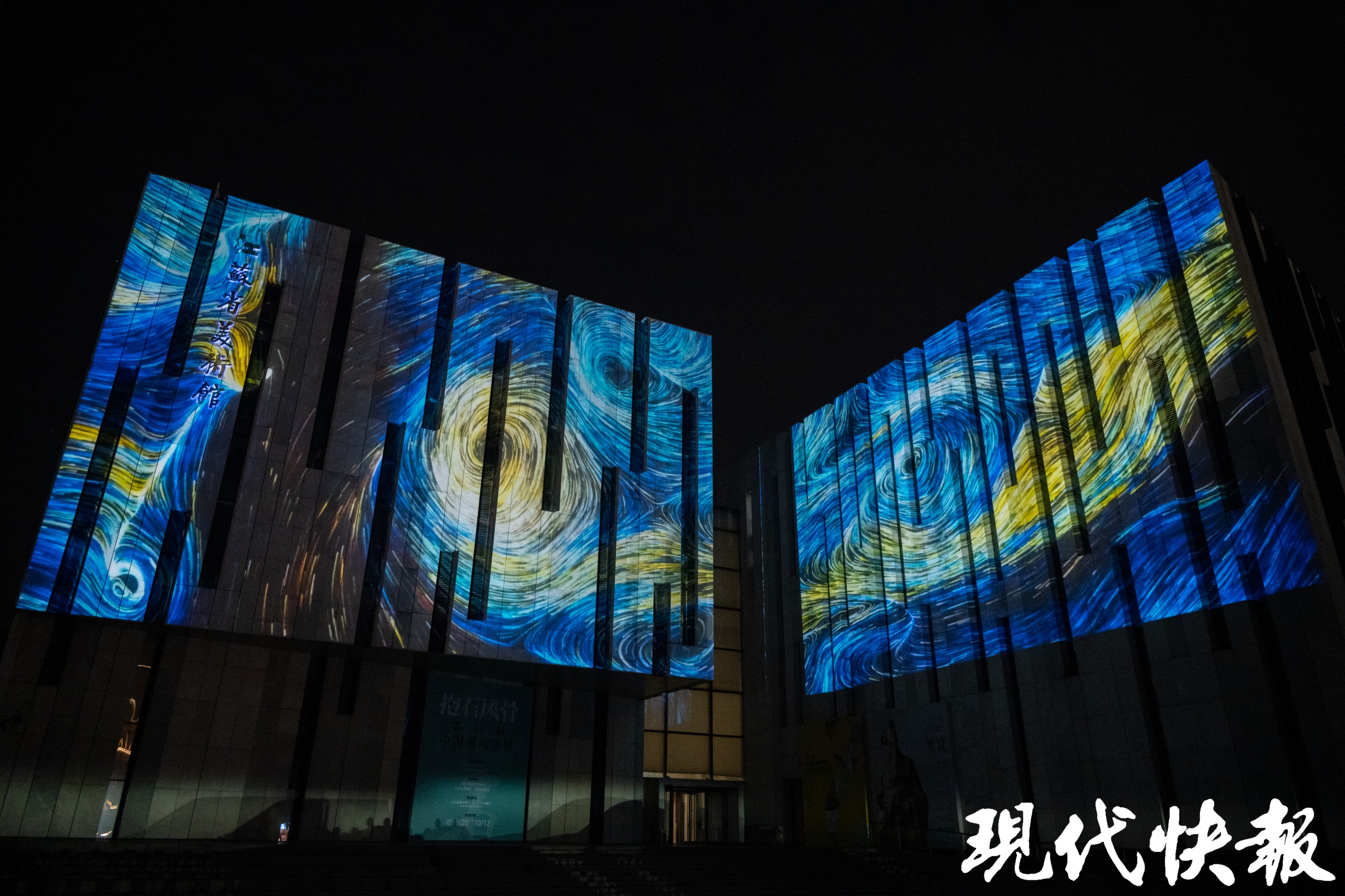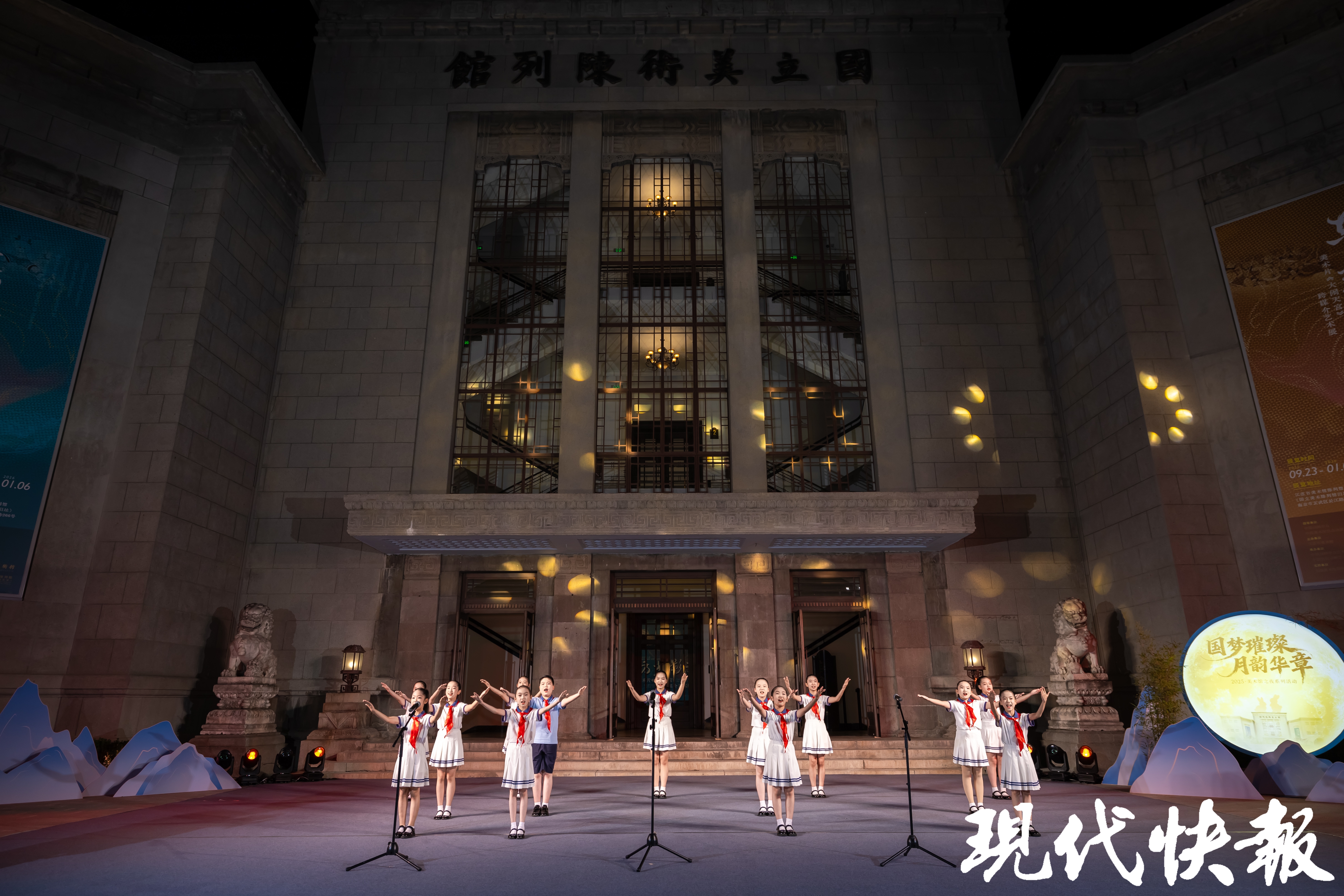 传统与潮流的碰撞,让长江路的夜晚更具吸引力,而分会场活动同样亮点纷呈。以“美学光影”为主题,江苏省美术馆新馆与陈列馆双馆联动,推出“国梦璀璨・月韵华章”美术馆之夜活动,打造穿越时空的艺术漫游。其中,在陈列馆有文艺演出精彩呈现,新馆则举办了“月满映华诞”光影秀,以建筑为幕,以月色为引,将千年文脉与现代科技交融,用灯光美学焕活建筑空间。