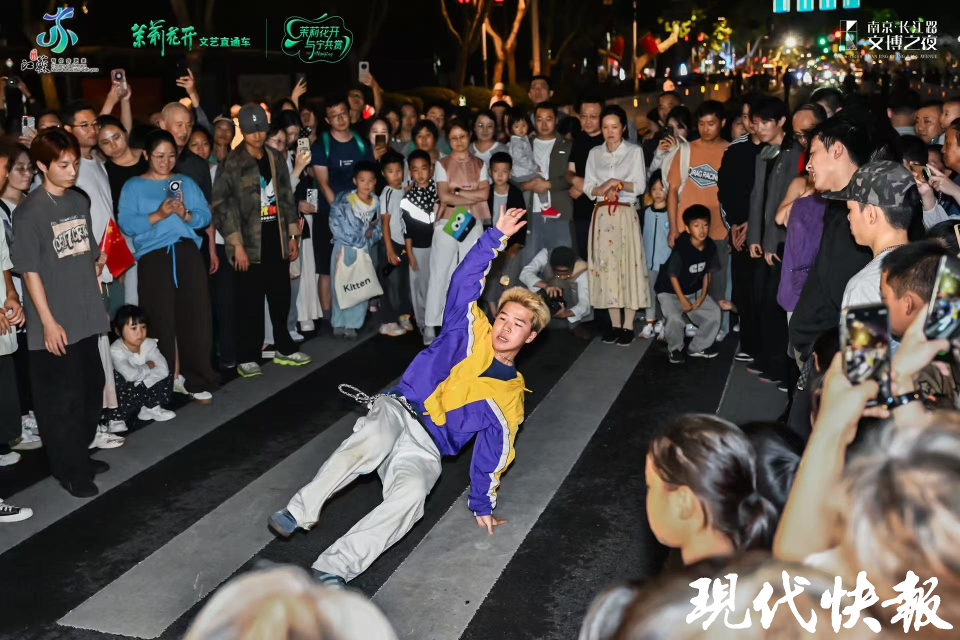 当梨园雅韵遇上街头快闪,夜游长江路又有新玩法!10月3日晚,“水韵江苏・南京长江路文博之夜”精彩继续。从晚上8时至9时,长江路1912街区至总统府景区段,限时开启了步行街模式,街舞Battle、古风巡游、人偶互动等特色活动接连亮相。主会场“梨园雅韵夜”也同步启幕,南京白局、昆曲等传统曲艺轮番登场,丰富玩法点燃夜色,为市民游客解锁金陵夜游新体验。