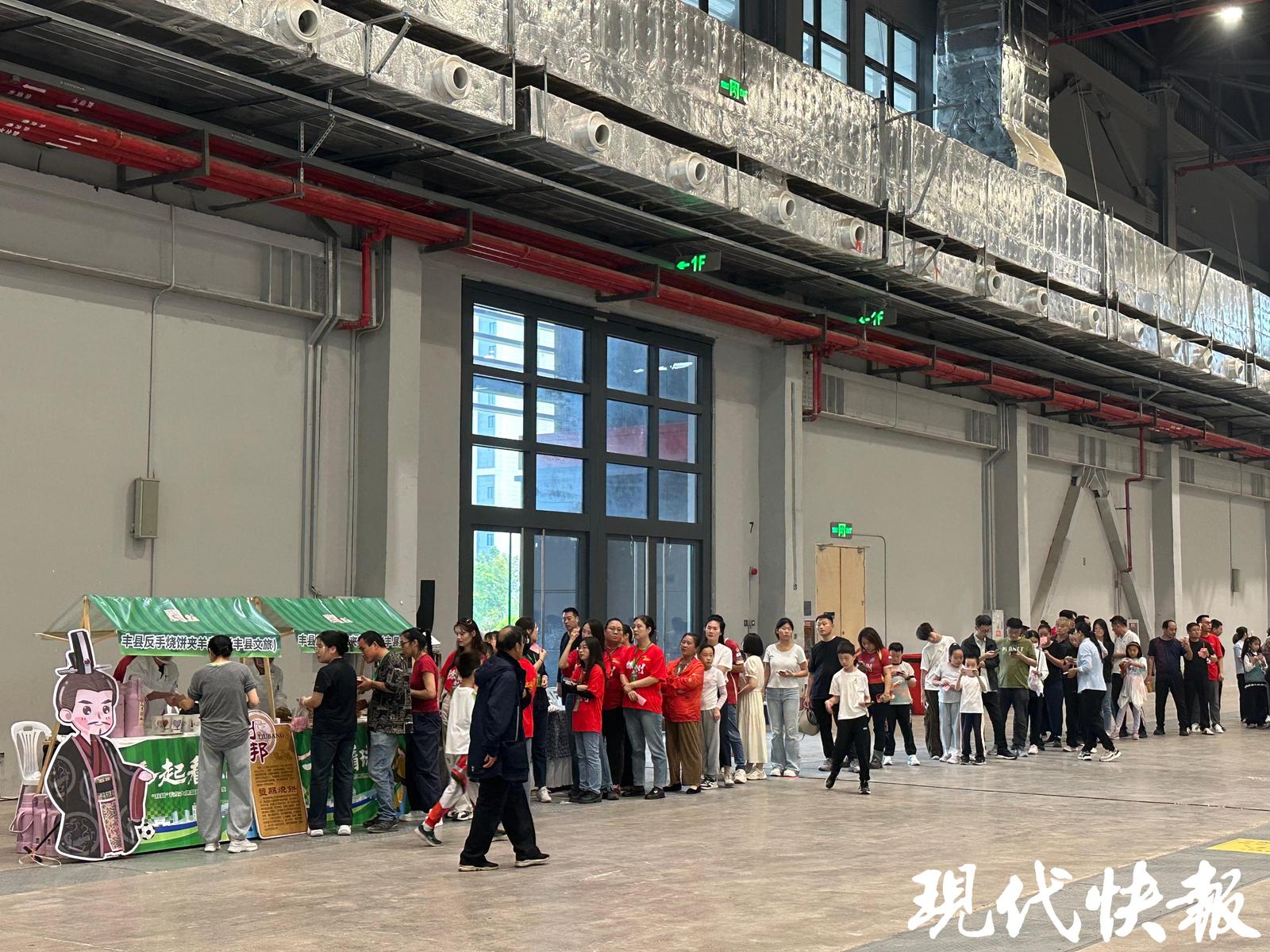 除此之外,最引人注目的风景线,无疑属于丰县的“黄金搭档”——反手烧饼夹羊盘肠与丰县帝王粥。摊位前,蜿蜒曲折的长队自开场便未曾间断,成为现场最具人气的焦点。“一饼一粥”的组合,仿佛自带流量密码,再次点燃了所有人的热情。