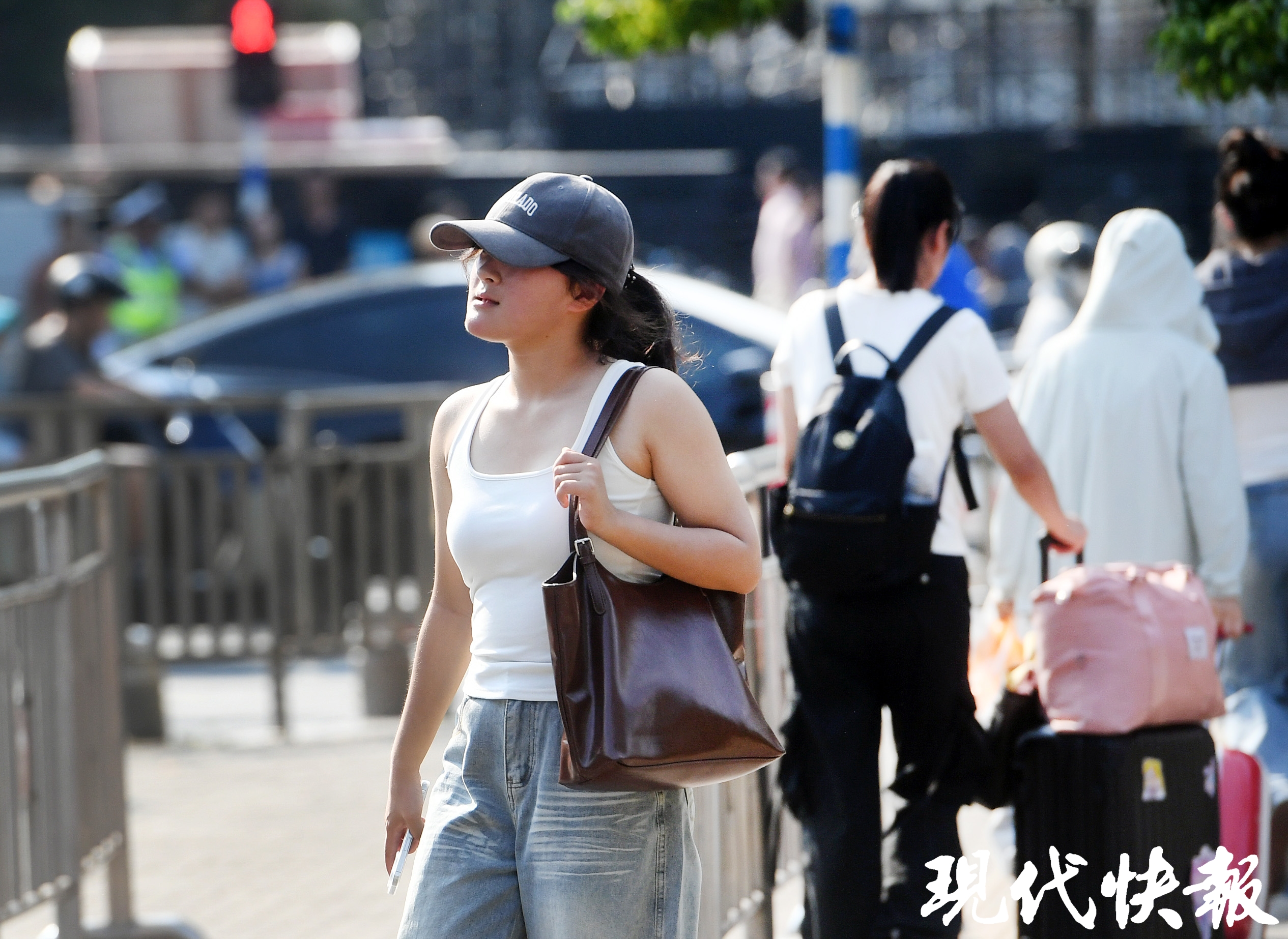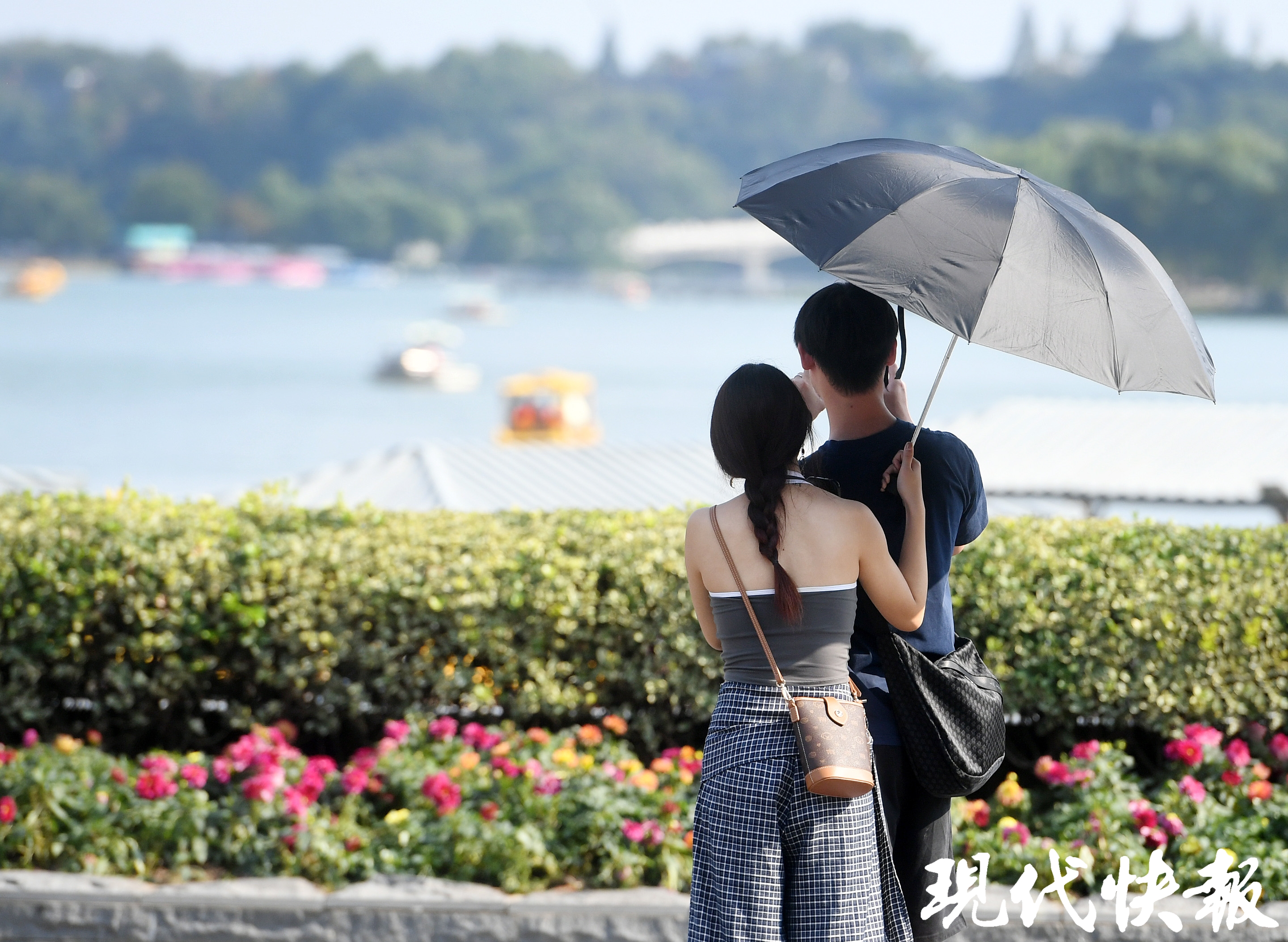 现代快报讯(记者 卢河燕/文 施向辉/摄)国庆中秋假期已过大半,气温也是随着假期氛围一起冲向顶点,瞬间将大家从秋日拽回夏天。10月6日恰逢中秋节,江苏热力值拉满,最高气温在高淳、昆山和吴江,都冲到了36℃,有种热回了炎夏的感觉,不少人把短袖又穿了回来。