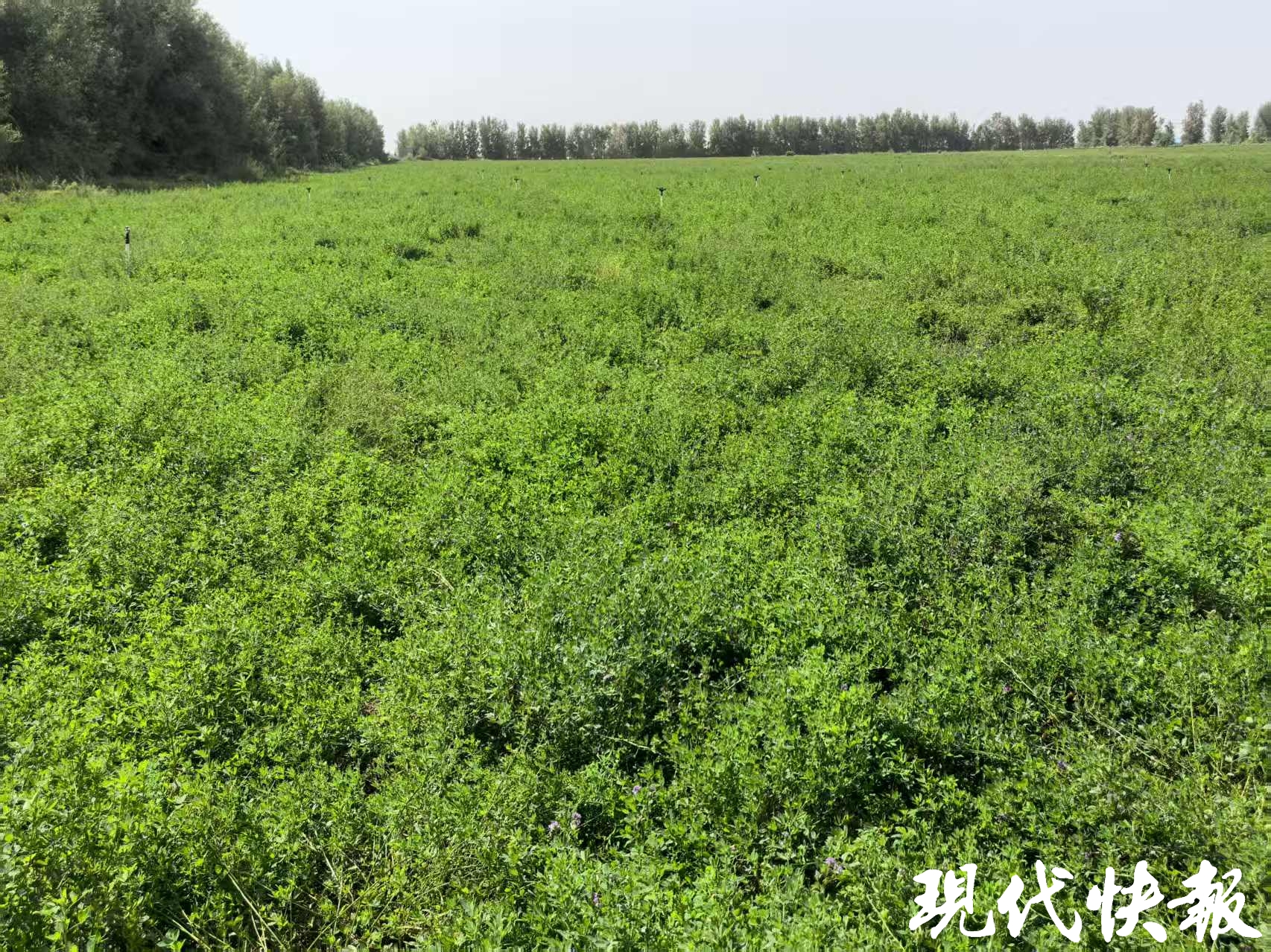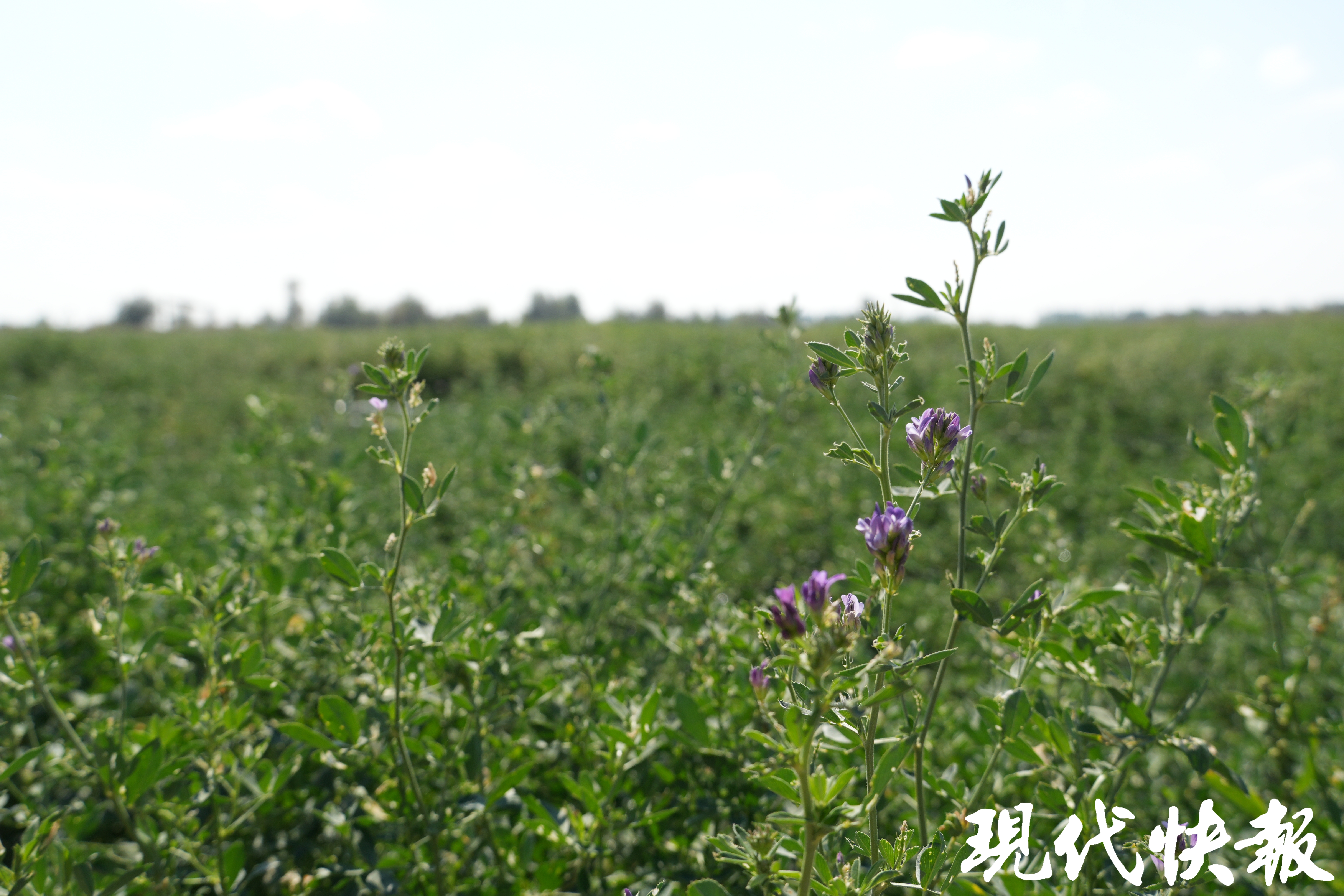 新疆呼图壁苜蓿科技小院实验田中的紫花苜蓿 是钟寅摄