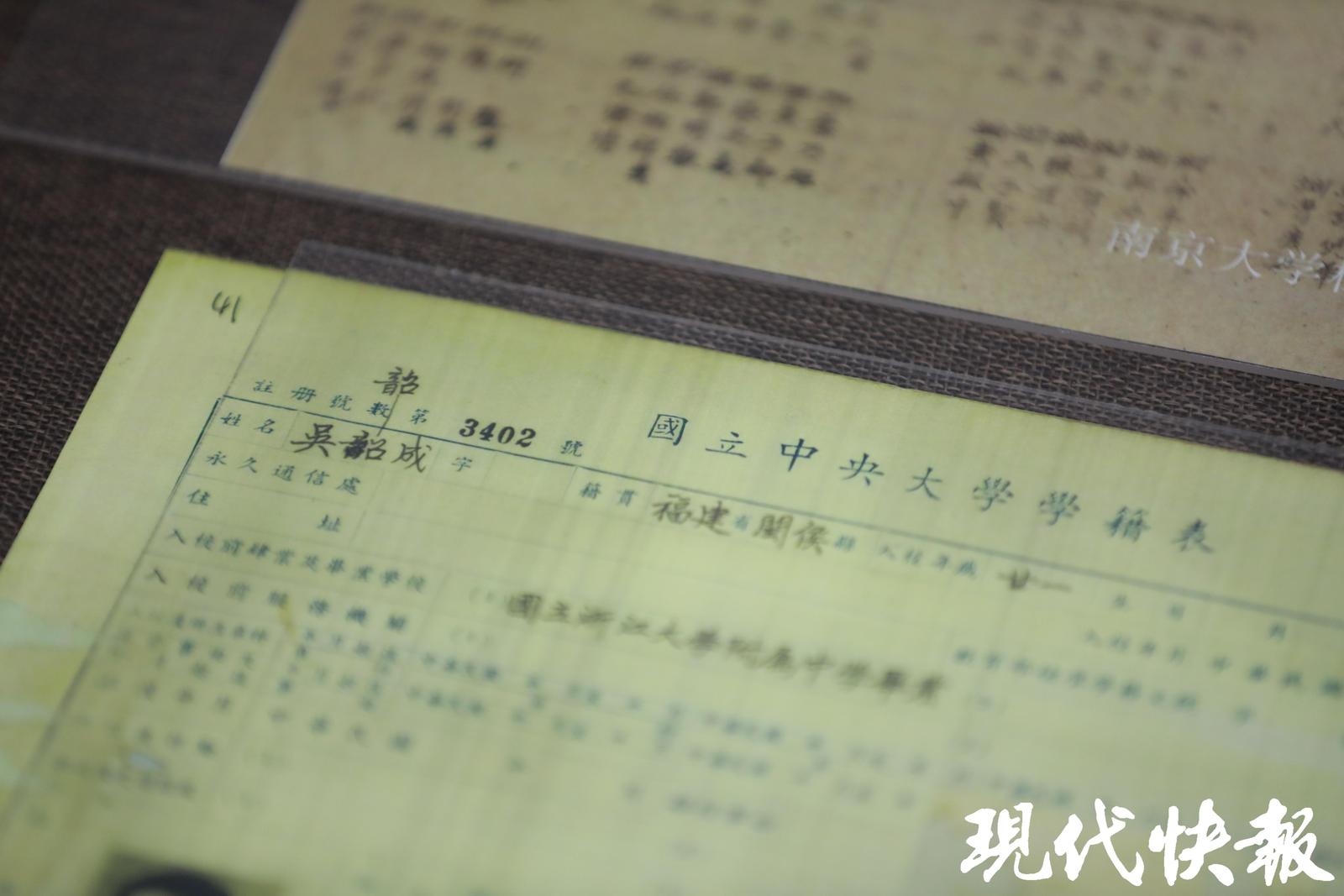 南京大学档案馆、校史研究室工作人员王丹介绍,1948年至1952年,吴韶成就读于国立中央大学经济系。根据相关档案了解,选择经济学系也是吴韶成自己和家人们的共同决定。
